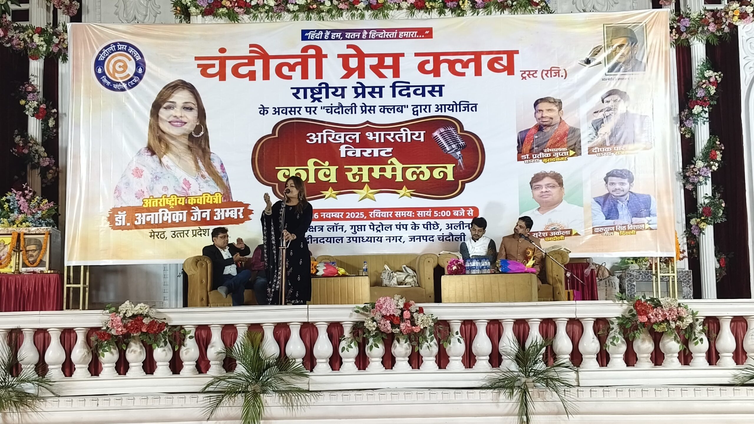 राष्ट्रीय प्रेस दिवस के अवसर पर चंदौली प्रेस क्लब के तत्वावधान में रविवार 16 नवंबर को अलीनगर स्थित नक्षत्र लॉन में भव्य विराट कवि सम्मेलन का आयोजन किया गया। सायं 5 बजे आरंभ हुए इस साहित्यिक समारोह में जनपद के जनप्रतिनिधि, अधिकारी, साहित्यकार, पत्रकार, शिक्षाविद एवं प्रबुद्धजन भारी संख्या में उपस्थित रहे।