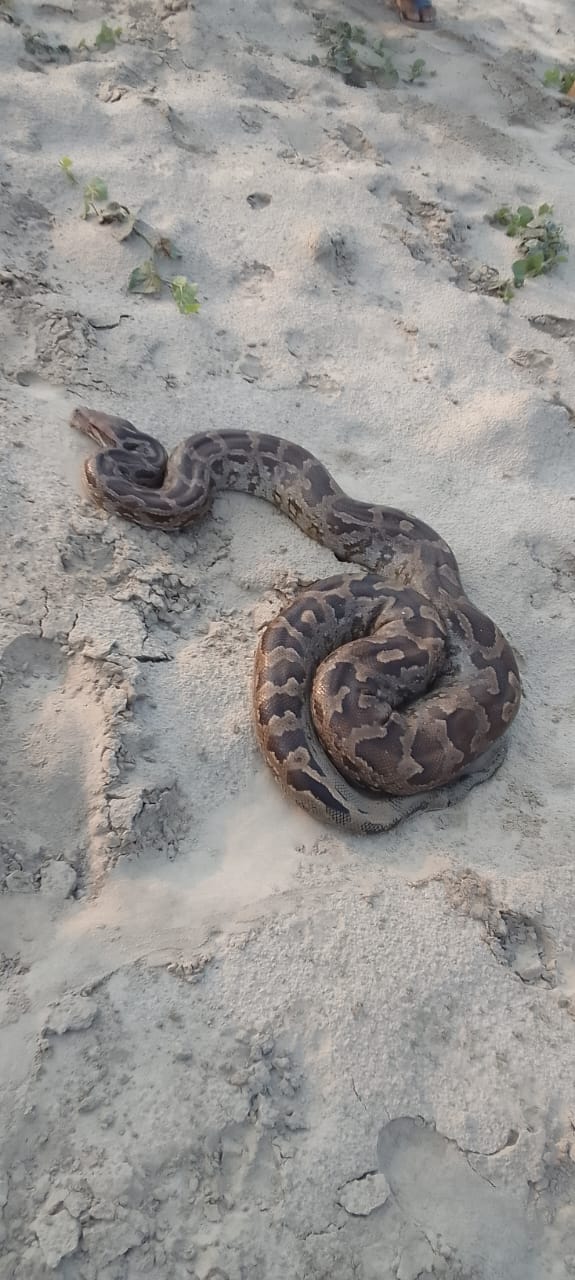 मिर्जापुर जिगना क्षेत्र अंतर्गत गंगा नदी के तटवर्ती गांव दुगौली में हनुमान मंदिर घाट पर आज सुबह एक अजगर दिखाई दिया।वन कर्मियों की टीम ने अजगर को पकड़ कर कुशियरा जंगल में छोड़ दिया है।