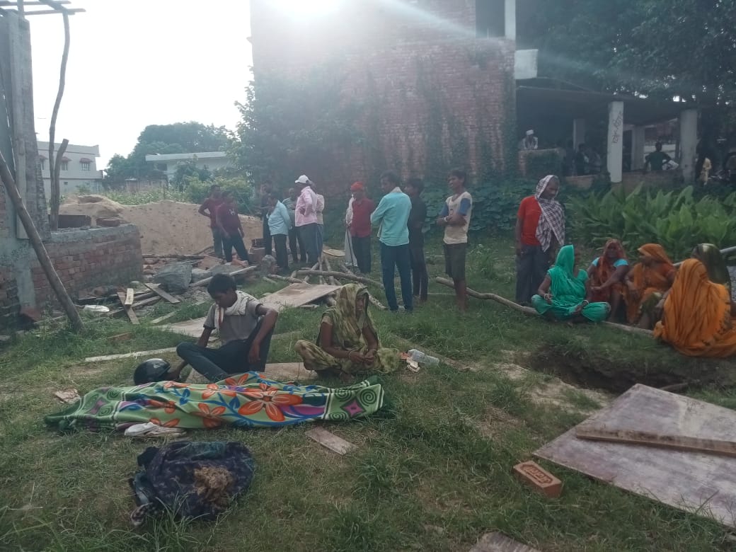 घटना के तुरंत बाद मकान मालिक सहित ठेकेदार व मजदूर सभी लोग मौके से फरार हो गए। जिसकी सूचना पाकर मौके पर पहुंचे मृतक के रिश्तेदारों ने घटनास्थल पर मृतक की शव को रखकर मुआवजा सहित अपनी विभिन्न मांग करते हुए शाम तक डटे रहे। घटना की सूचना पाकर मौके पर पुलिस पहुंची। घटनास्थल पर क्षेत्र के सम्मानित लोगों ने काफी देर से समझाने बुझाने का प्रयास कर रहे हैं।