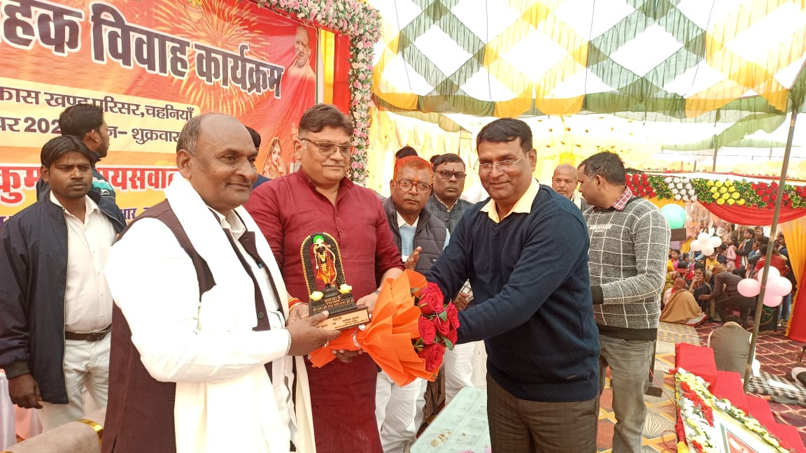 मुख्यमंत्री सामूहिक विवाह समारोह कार्यक्रम योजना अंतर्गत चहनिया विकास खंड ब्लाक मुख्यालय मे शुक्रवार को हिन्दू रीति रिवाज से 43 युगल जोड़े दामपत्य सूत्र बन्धन मे ढोल नगाड़े व मंत्रोच्चार के बीच वर वधु ने अग्निकुंड को साक्षी मानकर एक साथ जीने की कसम खाई।