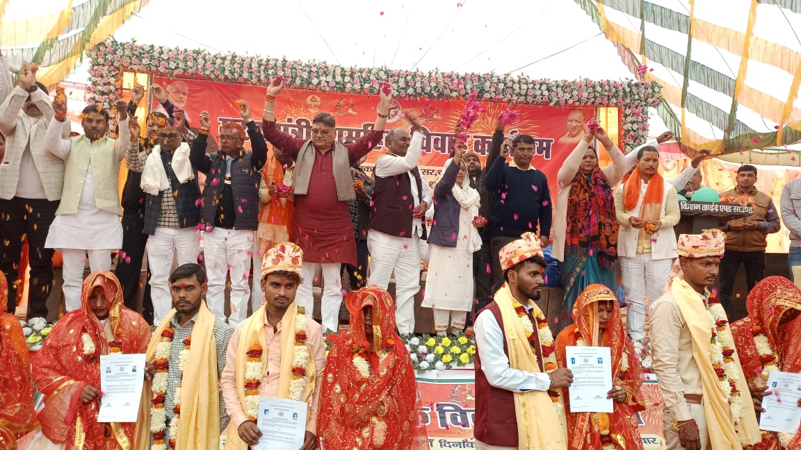 मुख्यअतिथि मुख्य ब्लाक प्रमुख अरुण कुमार जायसवाल ने कहा कि मुख्यमंत्री ने सामूहीक विवाह योजना को बढ़ावा देने के साथ ही गरीबों का सम्मान किया है ।वर वधू को सरकार के तरफ से वर्तन सेट,वर के लिए पैंट, सर्ट ,वधू के लिए साड़ी सेंट, डिनर सेट,प्रेशर कुकर, ट्राली बैग, चांदी की पायल,बिछीया, आदि सामन व उनके खाते में 60 हजार रुपया भी दे रहे हैं ताकि अपने जीवन का आरंभ अच्छे ढंग से कर सके।
