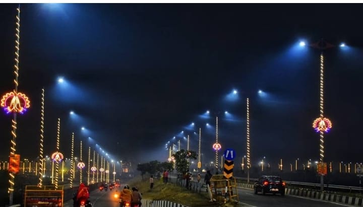 लगाई जा रहीं प्रोजेक्शन लाइटें