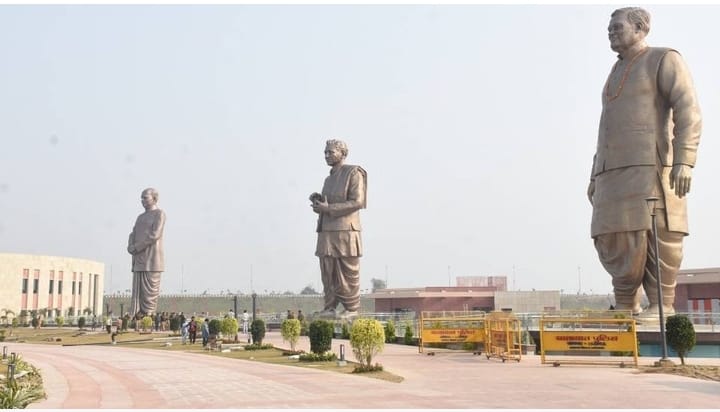 स्थल पर लगी पूर्व प्रधानमंत्री अटल बिहारी वाजपेयी, पंडित दीन दयाल उपाध्याय और श्यामा प्रसाद मुखर्जी की प्रतिमाओं पर प्रोजेक्शन लाइटें लगाई जा रही हैं। इससे रात के समय देखने पर प्रतिमाएं हर दिन अलग-अलग रंग के कपड़े पहनें दिखेंगी। तीनों प्रतिमाएं कांस्य की हैं और ऊंचाई 65 फीट है। इनके निर्माण पर 21 करोड़ रुपये खर्च हुए हैं। तीनों विभूतियों के जीवन यात्रा से जुड़े संस्मरणों को संजोने के लिए यहां पर एक म्यूजियम भी बनाया गया है, जिसकी फिनिशिंग का काम तेजी से चल रहा है।