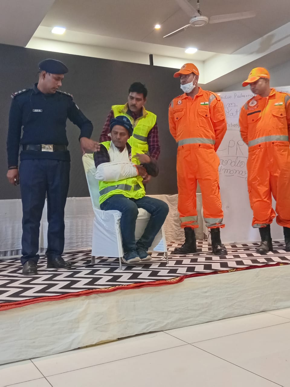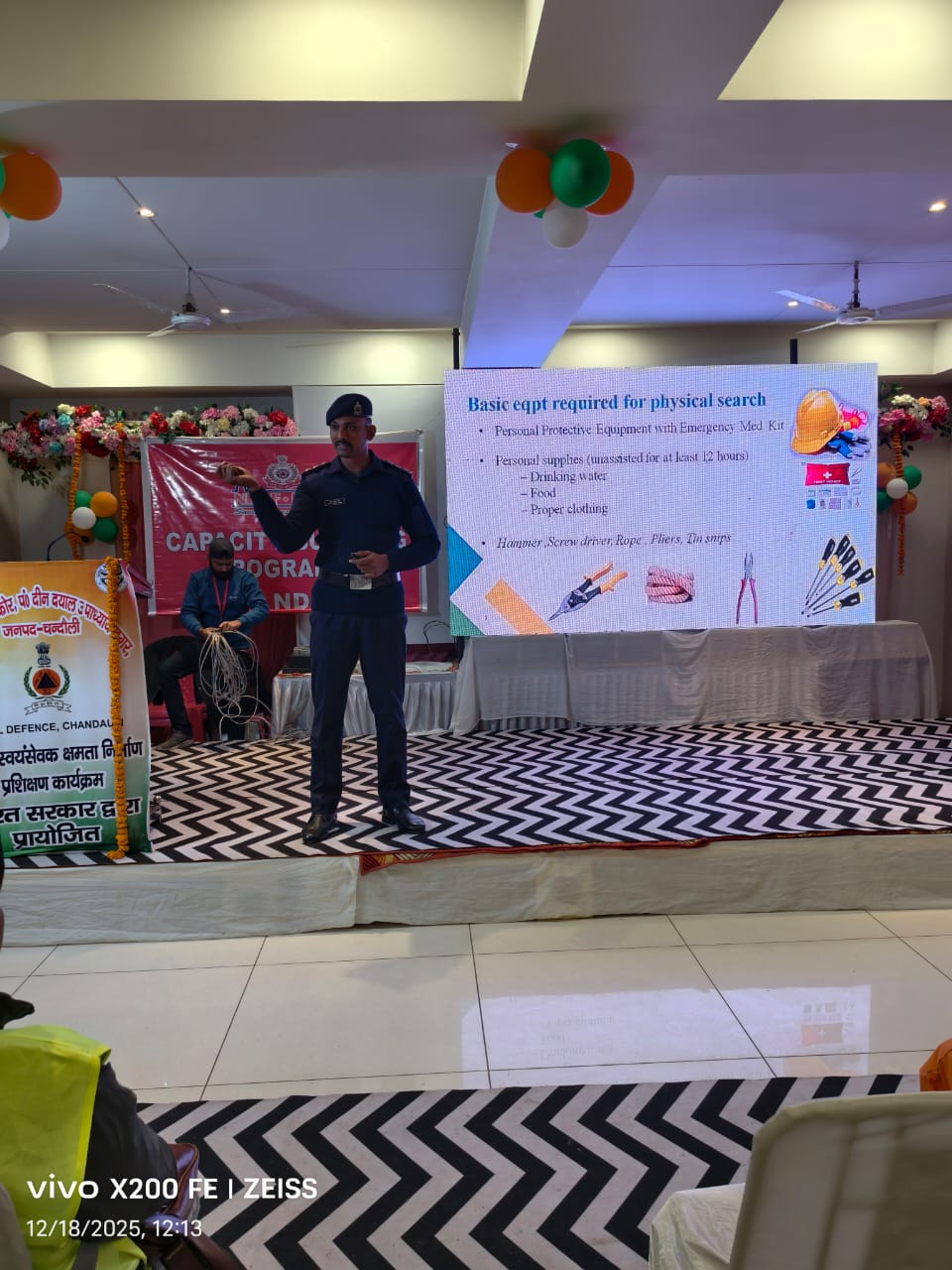 अपर जिलाधिकारी वित्त और राजस्व प्रभारी नागरिक सुरक्षा के दिशा निर्देशन में भारत सरकार द्वारा प्रायोजित नागरिक सुरक्षा के वार्डन एवं स्वयंसेवकों के क्षमता निर्माण प्रशिक्षण के आज चतुर्थ दिन नागरिक सुरक्षा पंडित दीनदयाल उपाध्याय नगर के वार्डन एवं स्वयंसेवकों को 11वीं बटालियन एनडीआरएफ द्वारा भवन के ध्वस्त होने के प्रकार,ध्वस्त भवन का सर्वेक्षण एवं बचाव के तरीके तथा बचाव के उपकरण तथा भवन में प्रवेश करते समय सावधानियां के संबंध में एनडीआरएफ द्वारा प्रशिक्षण दिया गया l