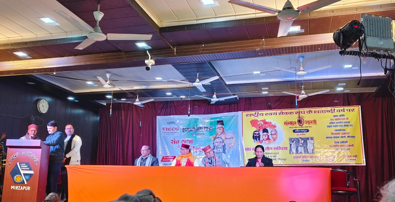 मिर्जापुर । संघ गंगा के मंचन ने दर्शकों को राष्ट्रीय स्वयंसेवक संघ की 100 वर्षों की यात्रा से अवगत कराया। सीमित समय में संघ के पहले तीन सर संघ चालकों का कार्य, उनका उद्देश्य, नेतृत्व ,नेतृत्व का हस्ताक्षरतरण, उससे जुड़ा इतिहास और जीवन चरित्र मंच पर जीवंत हुआ ।