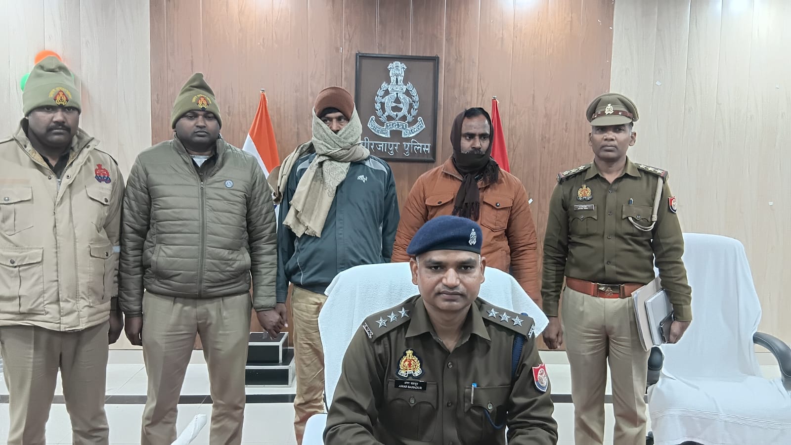 “सोमेन बर्मा” पुलिस उपमहानिरीक्षक/वरिष्ठ पुलिस अधीक्षक मीरजापुर द्वारा उपरोक्त घटना को गंभीरता पूर्वक लेते हुए अपर पुलिस अधीक्षक नगर व क्षेत्राधिकारी सदर के नेतृत्व में 03 पुलिस टीमों को गठित कर अभियुक्तों की गिरफ्तारी के निर्देश दिए गये । उक्त निर्देश के अनुक्रम में थाना कछवां पर पंजीकृत मुकदमा उपरोक्त में गठित पुलिस टीमों द्वारा साक्ष्य संकलित करते हुए प्राप्त मुखबिर की सूचना के आधार पर दिनांकः03.01.2026 को प्राइमरी पाठशाला रेलवे स्टेशन भैसा के पास से घटना से सम्बन्धित 02 मुख्य आरोपियों 1. रमेश कुमार सिंह उर्फ बड़का बच्ची व 2. विनोद कुमार सिंह उर्फ करिया पुत्रगण बसन्ता सिंह निवासी बजहां थाना कछवां जनपद मीरजापुर को अन्तर्गत धारा 115(2),352,351(2),103(1),3(5) बीएनएस में गिरफ्तार किया गया ।