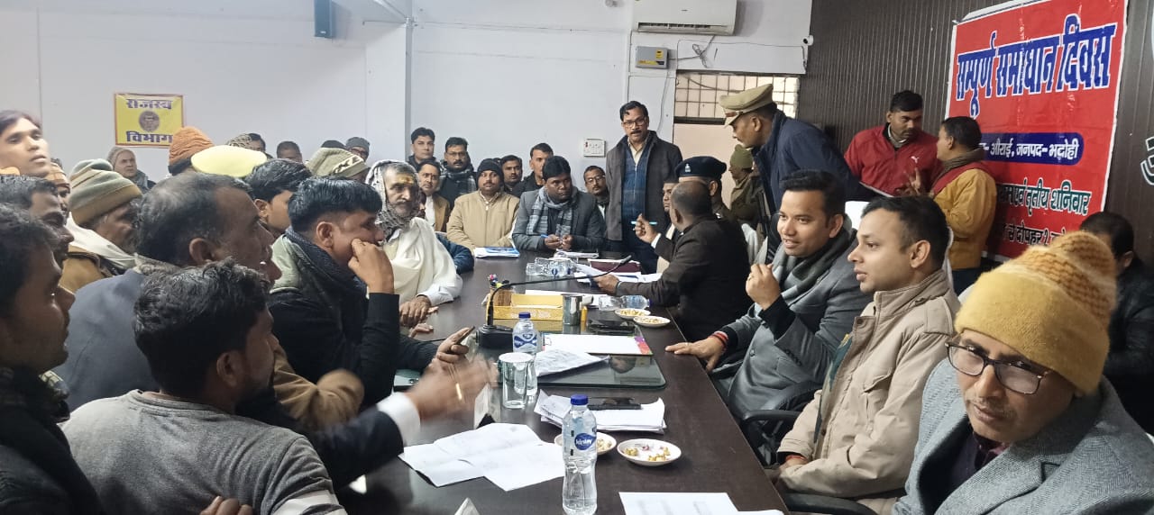 भदोही 05 जनवरी, 2026- शासन के मंशानुरूप जनशिकायतो के त्वरित निस्तारण एवं कार्यवाही के दृष्टिगत ‘‘सम्पूर्ण समाधान दिवस’’ जनपद के सभी तहसीलों में आयोजित किया गया। नववर्ष 2026 में पहला सम्पूर्ण समाधान दिवस तहसील औराई में जिलाधिकारी शैलेष कुमार एवं पुलिस अधीक्षक अभिमन्यु मांगलिक, मुुख्य विकास अधिकारी बाल गोबिन्द शुक्ल, मुख्य चिकित्साधिकारी डॉ0 संतोष कुमार चक, उप जिलाधिकारी औराई श्याममणि त्रिपाठी, तहसील ज्ञानपुर में अपर जिलाधिकारी कुंवर वीरेन्द्र मौर्य, उप जिलाधिकारी भानसिंह, तहसील भदोही में अपर जिलाधिकारी विजय नारायण सिंह, उप जिलाधिकारी अरुण गिरी, अन्य अधिकारियो द्वारा सम्पूर्ण समाधान दिवस में उपस्थित होकर फ़रियादियों की समस्याओ को गंभीरता से सुन कर निस्तारण किया गया। इस अवसर पर सभी अधिकारियों द्वारा उपस्थित जनमानस, तहसील के अधिकारियों कर्मचारियों को नववर्ष की बधाई व मंगलकामना देते हुए सुशासन पर बल दिया गया।
