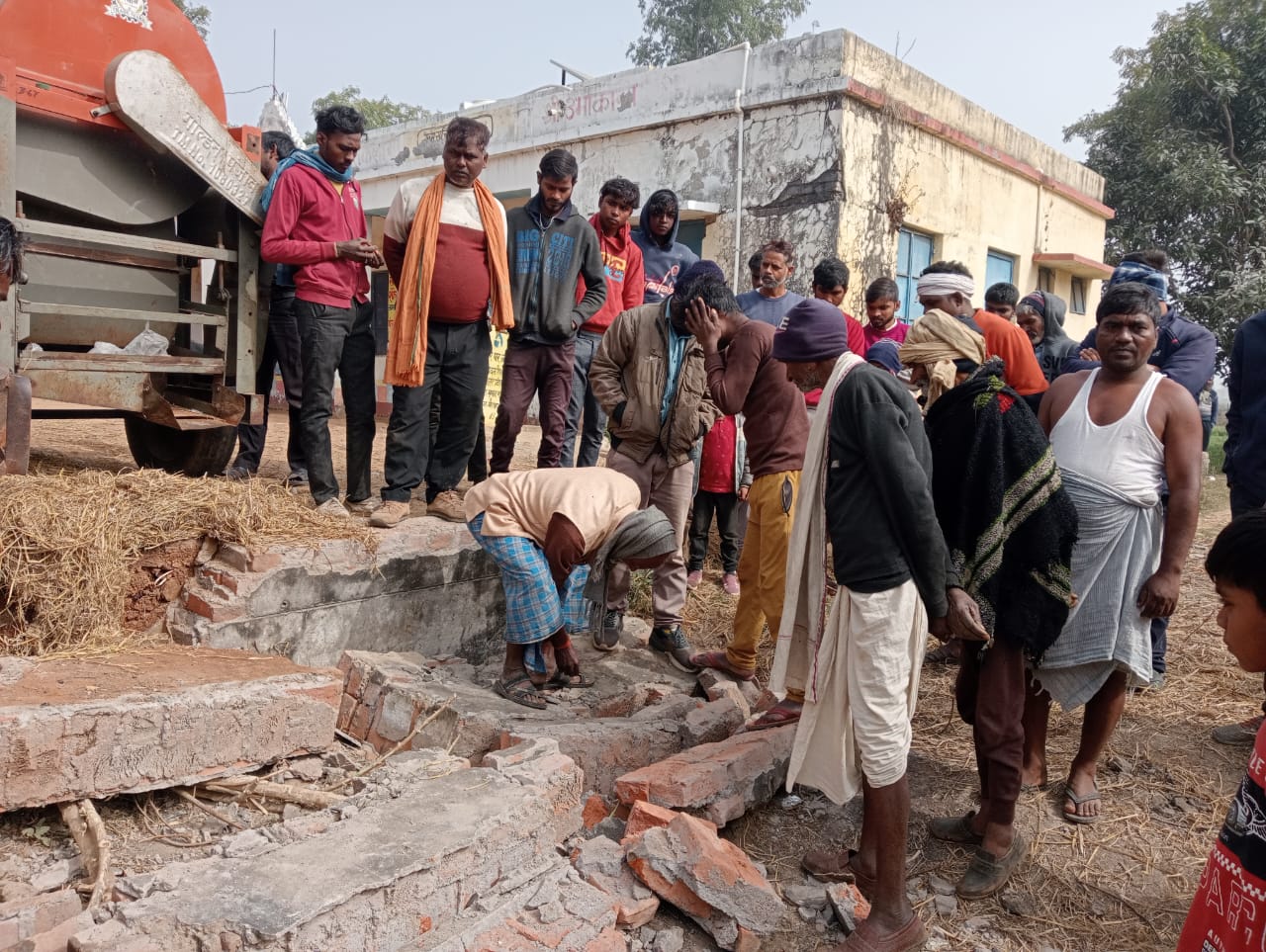 सामुदायिक भवन की जर्जर दिवार होने के कारण गिरी दीवार