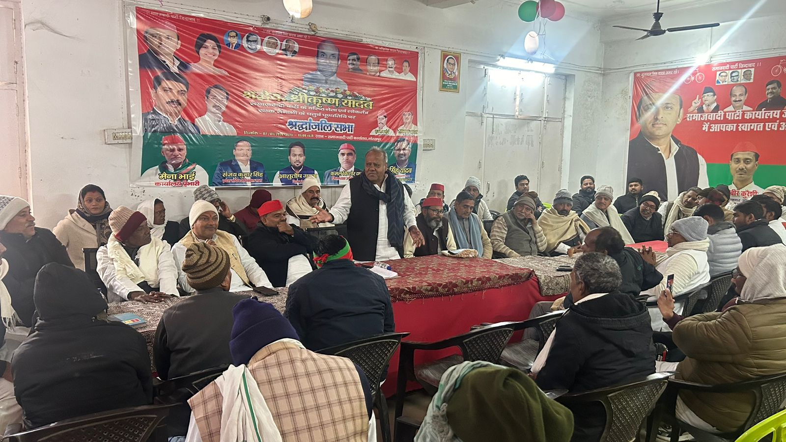 समाजवादी पार्टी के बेतियाहाता स्थित कार्यालय पर लोकतंत्र रक्षक सेनानी, समाजवादी नेता श्रीकृष्ण यादव की पुण्यतिथि जिला उपाध्यक्ष मिर्जा कदीर बेग की अध्यक्षता में मनाई गई संचालन जिला महासचिव रामनाथ यादव ने किया मुख्य अतिथि के रूप में पूर्व मंत्री जयप्रकाश यादव उपस्थित रहे नेताओं व कार्यकर्ताओं ने श्रीकृष्ण यादव के चित्र पर पुष्प अर्पित कर उन्हें श्रद्धांजलि दी तथा उनके व्यक्तित्व एवं कृतित्व पर प्रकाश डाला पूर्व मंत्री जयप्रकाश यादव ने कहा कि लोकतंत्र रक्षक सेनानी, खांटी समाजवादी नेता, 70 के दशक में यूपी बिधान सभा में सरकार विरोधी पर्चा फेंकने वाले श्रीकृष्ण यादव एक निर्भीक निडर और स्पष्टवादी नेता थे।