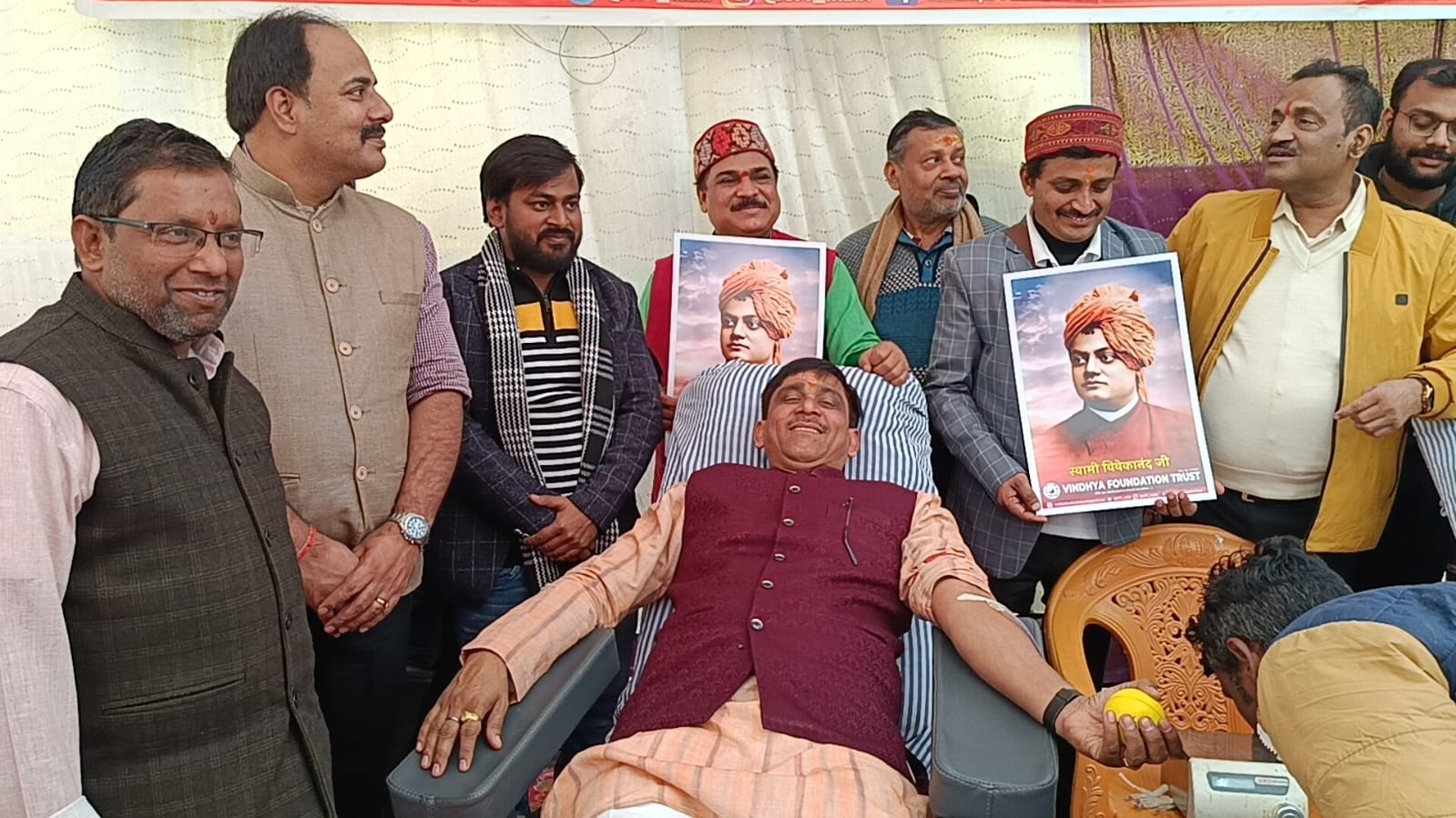 नगर पालिका अध्यक्ष श्यामसुंदर केशरी ने युवा दिवस की पूर्व संध्या पर नगर के ऐतिहासिक प्रांगण घंटाघर में नगर पालिका परिषद और विंध्य फाउंडेशन के संयुक्त तत्वाधान में आयोजित रक्त शिविर में पहुंचकर रक्तदान किया। बता दे बारह जनवरी को स्वामी विवेकानंद की जयंती है, जिसे राष्ट्रीय युवा दिवस के रूप में मनाया जाता है।
