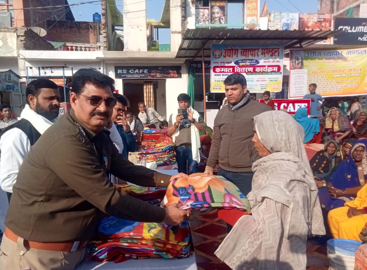 एसीपी राजातालाब ने बुजुर्गों को वितरण किया कंबल