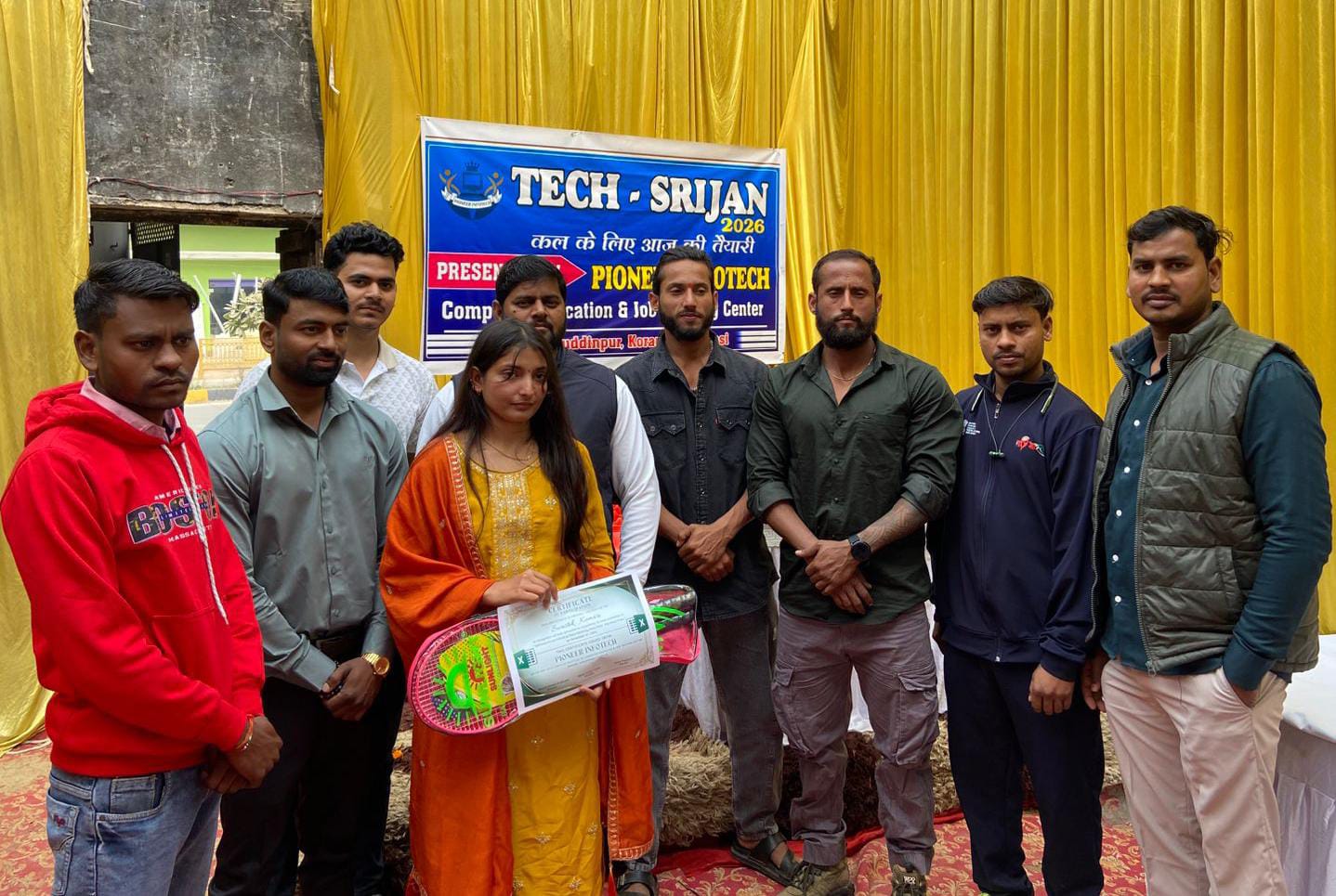 राजातालाब। टच सृजन और युवक मंगल दल के तत्वाधान में रविवार को पायनियर इन्फोटेक के नेतृत्व में कोचिंग सेंटर पर आयोजित कार्यक्रम के दौरान कोचिंग पढ़ने वाली छात्राओं को बैडमिंटन और सर्टिफिकेट का वितरण किया गया।