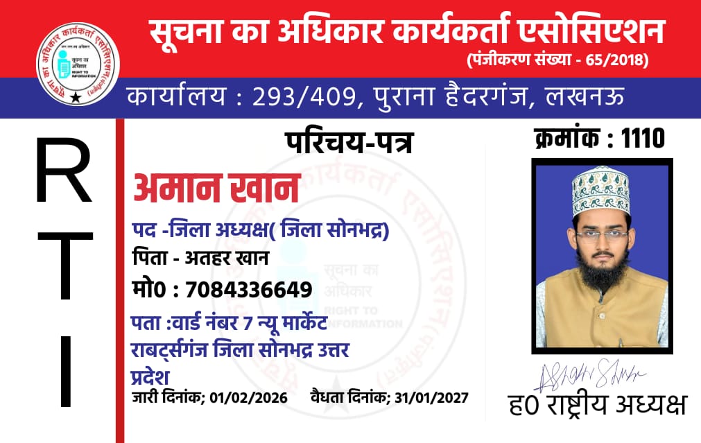 राबर्ट्सगंज निवासी अमान खान अब तक अपनी खबरों से भ्रष्ट तंत्र की जड़ें हिलाते थे, लेकिन अब उनके पास ‘सूचना का अधिकार’ (RTI) जैसा कानूनी हथियार भी है। इस नियुक्ति की खबर लगते ही जिले के सफेदपोशों और अमान खान की तरक्की से जलने वाले ‘दुश्मनों’ के खेमे में मातम पसर गया है। यह नियुक्ति उन लोगों के लिए एक सीधा संदेश है जो उन्हें रोकने का ख्वाब देख रहे थे।
