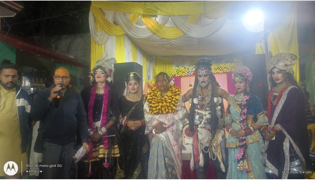 नगर के सुप्रसिद्ध देवी पचरा गीत भजन गायक अशोक सिद्धार्थ केसरवानी ने गणेश वंदना सहित कई सुर मधुर भजन देवी गीत प्रस्तुत कर कार्यक्रम को आगाज दिया वही राधा , कृष्ण , नंदी पर सवार शंकर , पार्वती , आगवाला फायर नृत्य , मां काली का तांडव नृत्य इत्यादि भगवान का रूप धारण कर कलाकारों ने एक से बढ़कर एक भक्ति भाव से भरपूर गीतों पर भाव नृत्य कर सबका दिल जीतने के साथ ही कार्यक्रम को यादगार साबित किया।