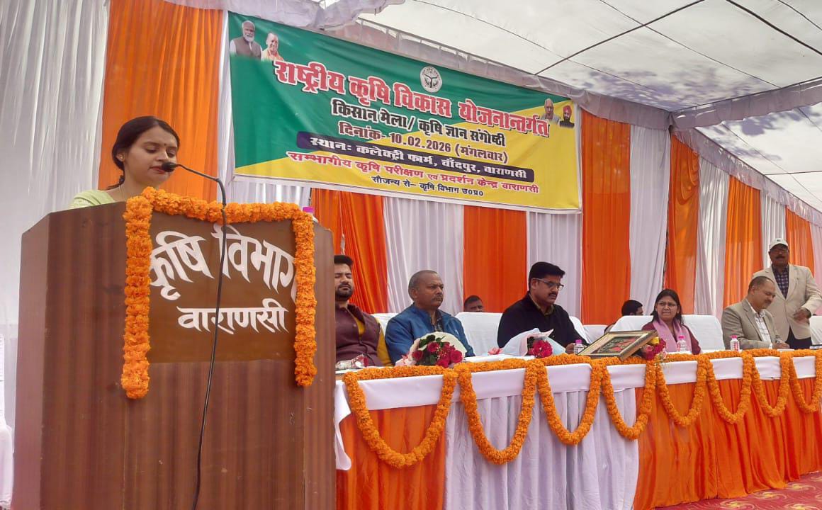 राष्ट्रीय कृषि विकास योजना अंतर्गत मंगलवार को संभागीय कृषि परीक्षण एवं प्रदर्शन केंद्र वाराणसी पर एक दिवसीय किसान मेला /कृषक ज्ञान संगोष्ठी का आयोजन उप कृषि निदेशक शोध श्री शिवकुमार द्वारा किया गया जिसमें सैकड़ो किसानों ने प्रतिभाग किया। मेले का उद्घाटन करते हुए पूनम मौर्या जिला पंचायत अध्यक्ष ने कहा कि किसानों को मृदा स्वास्थ्य कार्ड, फसल बीमा यंत्रीकरण एवं पीएम किसान सम्मान निधि से किसानों को सशक्त बनाया जा रहा है एवं महोदय द्वारा प्रशिक्षण एवं प्रदर्शन की फसलों के साथ-साथ बीज परीक्षण प्रयोगशाला का भी निरीक्षण किया गया।