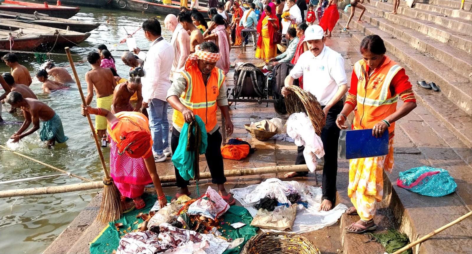 महाशिवरात्रि पर काशी आने वाले लाखों श्रद्धालुओं को स्वच्छ, सुरक्षित और सुगम वातावरण प्रदान करने और गंगा नदी को स्वच्छ रखने में जन-भागीदारी बढ़ाने के उद्देश्य से गुरुवार को नमामि गंगे ने नगर निगम के साथ आवाह्न किया कि स्वच्छता ही सेवा है- सफाई ही पूजा है। नमामि गंगे काशी क्षेत्र के संयोजक व नगर निगम के स्वच्छता ब्रांड एंबेसडर राजेश शुक्ला के नेतृत्व में दशाश्वमेध, प्रयाग, राजेंद्र प्रसाद और मानमंदिर घाट तक गंगा तट की स्वच्छता करने के बाद लाउडस्पीकर और स्वयंसेवकों के माध्यम से श्रद्धालुओं को गंगा में गंदगी न फैलाने और स्वच्छता बनाए रखने के लिए प्रेरित किया गया, जिससे हजारों लोगों ने स्वच्छता का संकल्प लिया।
