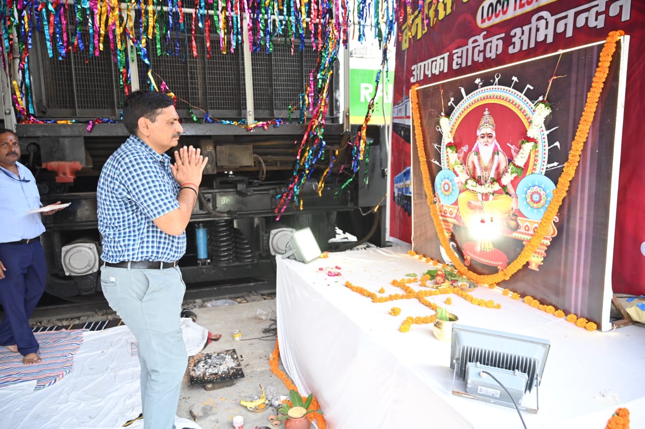 बनारस रेल इंजन कारखाना में शिल्पकला और निर्माण के अधिष्ठाता भगवान विश्वकर्मा का पूजनोत्सव 17/09/2025 को धूमधाम से मनाया गया। इस अवसर पर महाप्रबंधक नरेश पाल सिंह, प्रमुख मुख्य विभागाध्यक्षगण एवं वरिष्ठ अधिकारियों के साथ कार्यशाला परिसर के विभिन्न शापों में बने भव्य विश्वकर्मा पूजा पंडालों में पहुँचकर भगवान विश्वकर्मा की पूजा अर्चना की एवं समस्त बरेकाकर्मियों को विश्वकर्मा पूजा की हार्दिक बधाई एवं शुभकामनाएँ दीं।