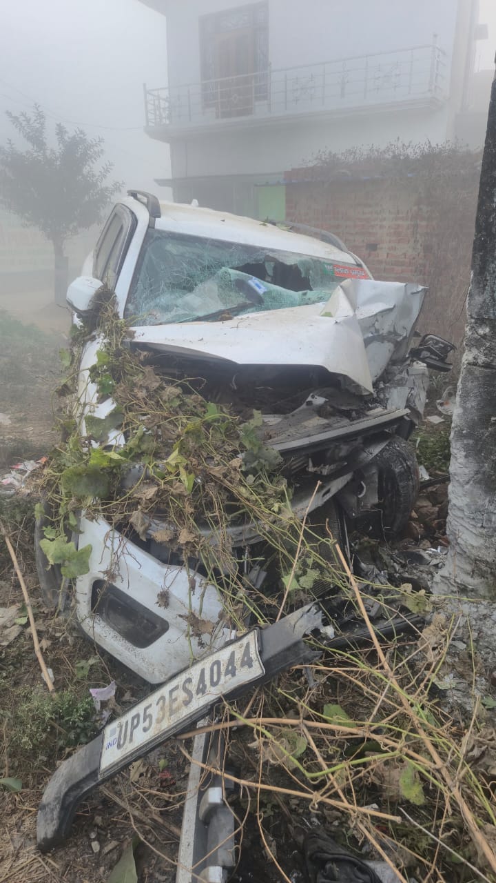दुर्घटना में स्कार्पियो का अगला हिस्सा बुरी तरह क्षतिग्रस्त