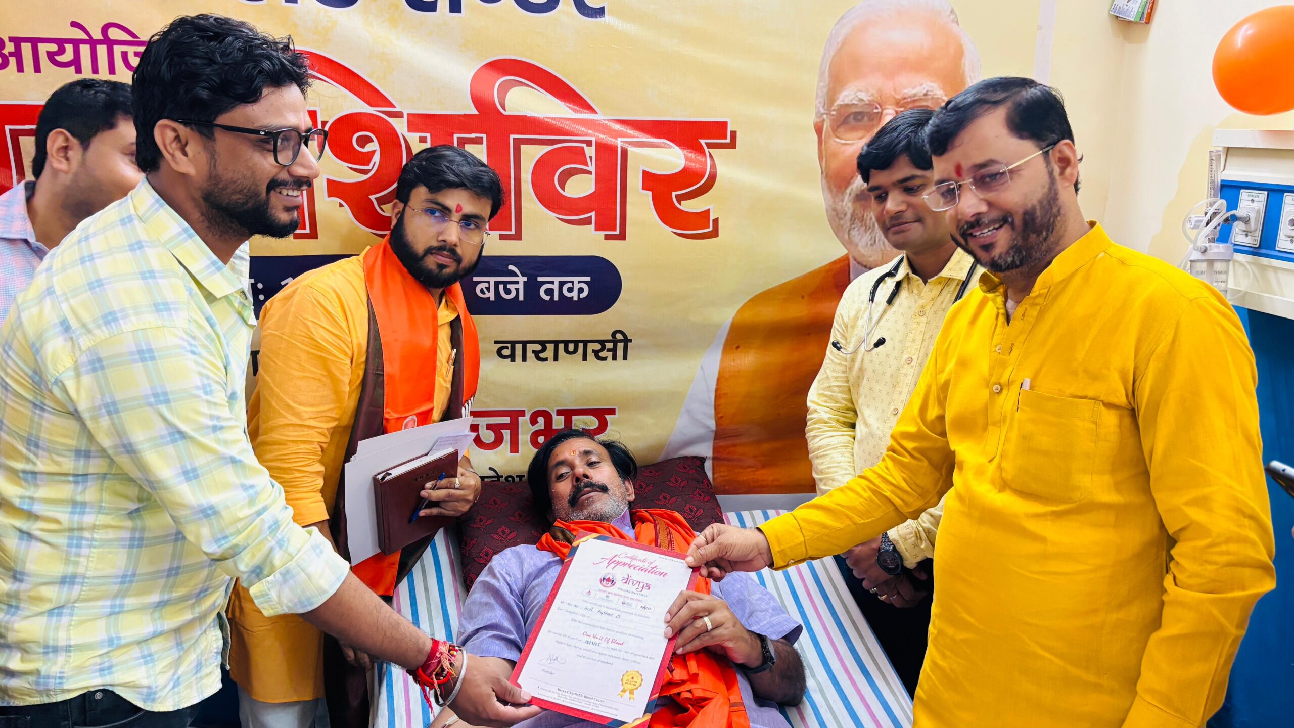 वाराणसी अपने विधानसभा क्षेत्र के चांदमारी रिंग रोड मेडिसिन हॉस्पिटल एवं दिव्या चैरिटेबल ब्लड सेंटर में प्रधानमंत्री श्री नरेंद्र मोदी जी के जन्मदिन पर चल रहे सेवा पखवाड़ा कार्यक्रम के अंतर्गत बतौर मुख्य अतिथि कैबिनेट मंत्री अनिल राजभर सम्मिलित हुए। उन्होंने स्वयं रक्तदान कर समाज को प्रेरित किया और भाजपा युवा मोर्चा, वाराणसी द्वारा आयोजित इस विशाल रक्तदान शिविर की सराहना की।
