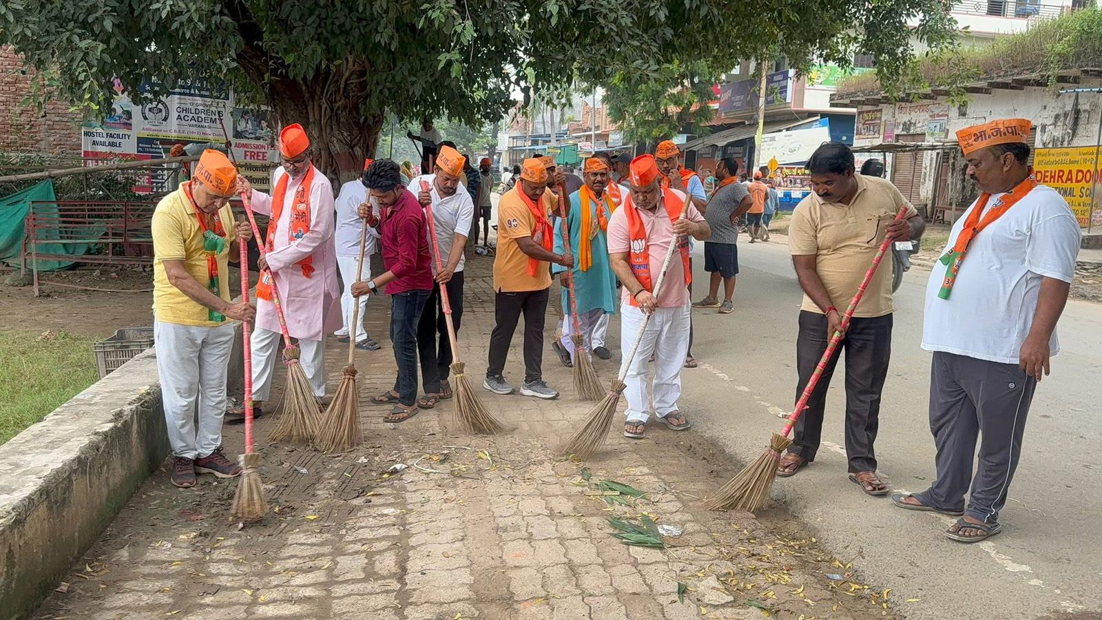 साथ में मंडल अध्यक्ष जय प्रकाश पटेल, जिला मंत्री विनोद पटेल पार्षद प्रतिनिध गोपाल पटेल जितेंद्र केशरी , राममिलन मौर्य मल्लू पटेल विहारी पटेल, विनोद कुमार सिंह राजेंद्र राजभर आदि लोग उपस्थित रहे।