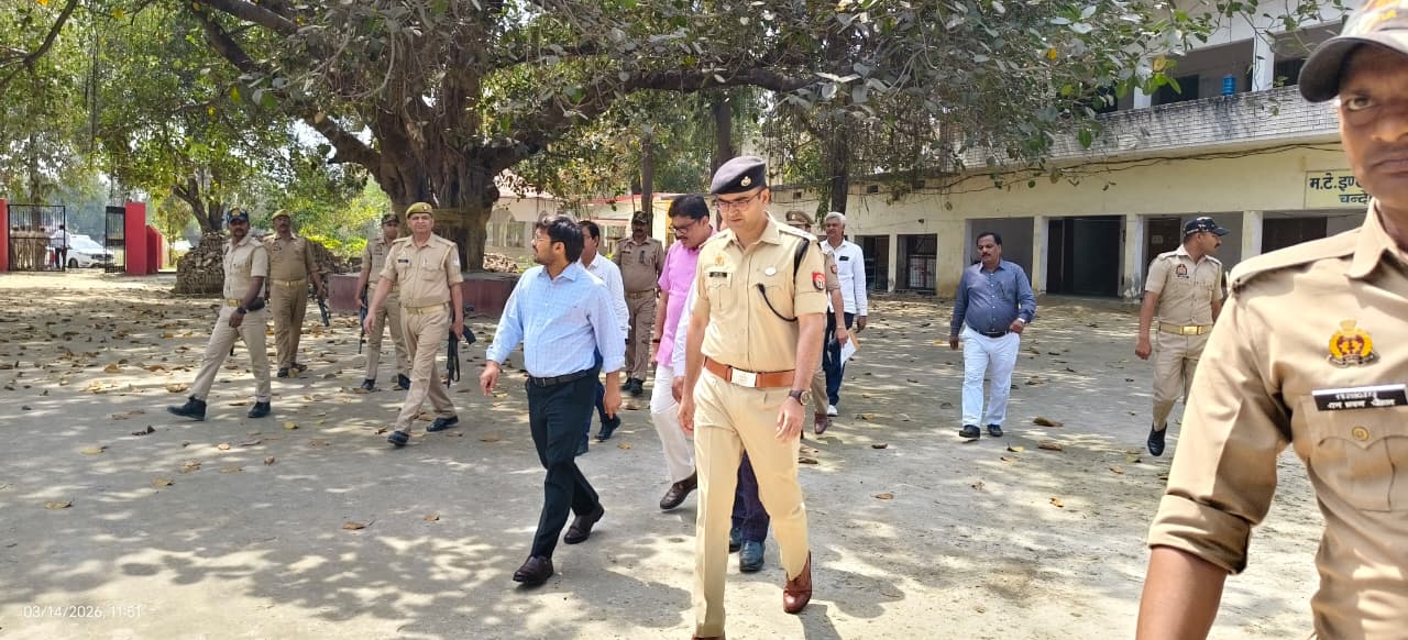 चन्दौली उ0प्र0 पुलिस भर्ती व पदोन्नति बोर्ड, लखनऊ के द्वारा आयोजित उपनिरीक्षक नागरिक पुलिस व समकक्ष पदों की परीक्षा को निष्पक्ष, नकल विहीन, पारदर्शी एवं शांतिपूर्ण ढंग से सम्पन्न कराये जाने के उद्देश्य से जिलाधिकारी चंद्र मोहन गर्ग एवं पुलिस अधीक्षक आदित्य लांग्हे ने सामुहिक रूप से महेंद्र टेक्निकल इंटर कालेज चंदौली का स्थलीय निरीक्षण किया।