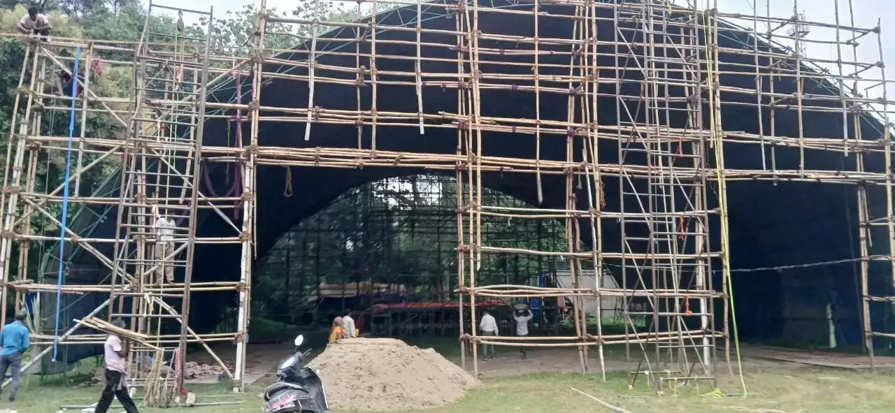 इसी क्रम में काशी हिंदू विश्वविद्यालय (बीएचयू) स्थित मधुबन पार्क में इस वर्ष भी भव्य दुर्गा पूजा पंडाल का निर्माण जोरों पर है। करीब दो सप्ताह से बंगाल से आए हुए कारीगर पंडाल को सजाने-संवारने में जुटे हुए हैं। रात-दिन की मेहनत से यह पंडाल नवरात्र से पहले पूरी तरह तैयार हो जाएगा।