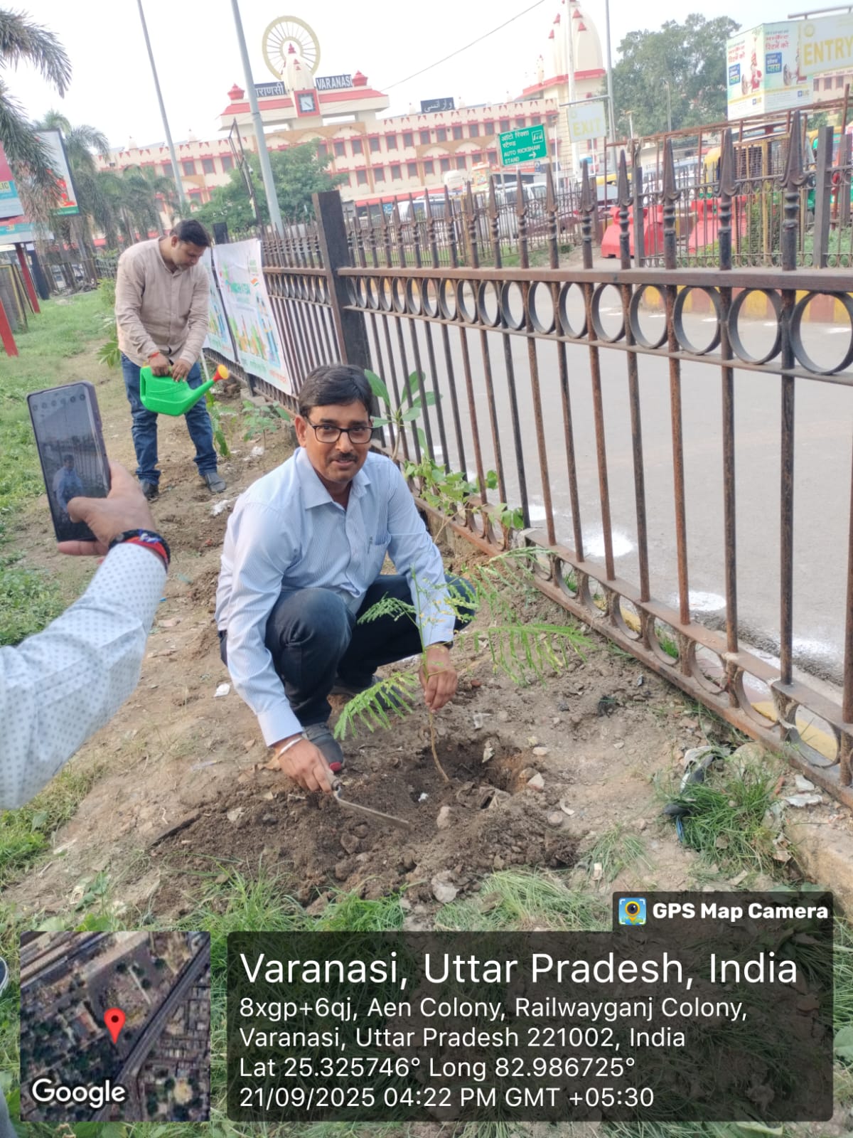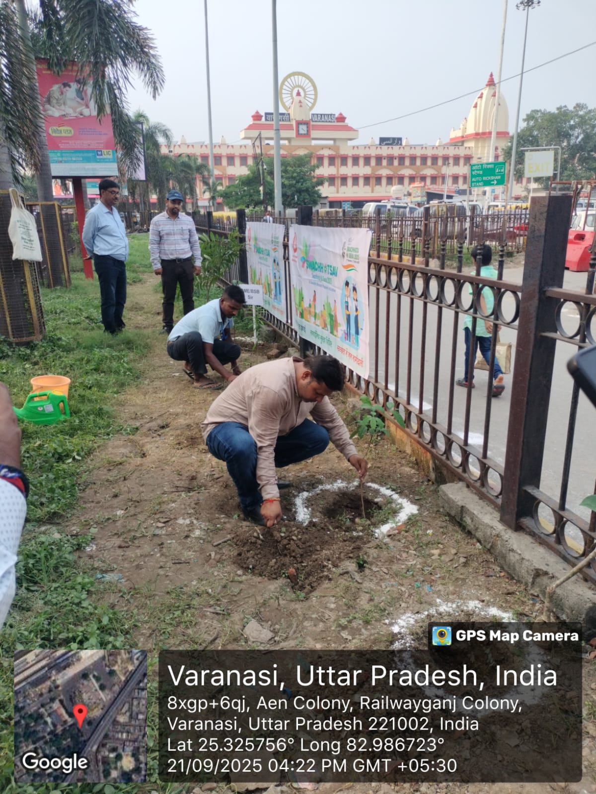 वाराणसी स्वच्छ भारत मिशन के तहत वाराणसी कैंट रेलवे स्टेशन पर चल रहे स्वच्छता उत्सव के पांचवें दिन प्रकृति और संवेदना का अनोखा संगम देखने को मिला। “पेड़ माँ के नाम” थीम के तहत रविवार को स्टेशन के सर्कुलेटिंग एरिया में बृहत वृक्षारोपण कार्यक्रम आयोजित किया गया। इसमें अशोक, अर्जुन, नीम और अन्य छायादार व औषधीय पेड़ लगाए गए।