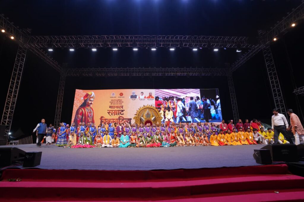 04 अप्रैल 2026, वाराणसी। मध्य प्रदेश शासन संस्कृत विभाग द्वारा उत्तर प्रदेश सरकार के सहयोग से सम्राट विक्रमादित्य पर केंद्रित महानाट्य के मंचन के दूसरे दिन उत्तर प्रदेश की श्रम एवं सेवा नियोजन मंत्री अनिल राजभर मुख्य अतिथि के रूप में उपस्थित हुए।