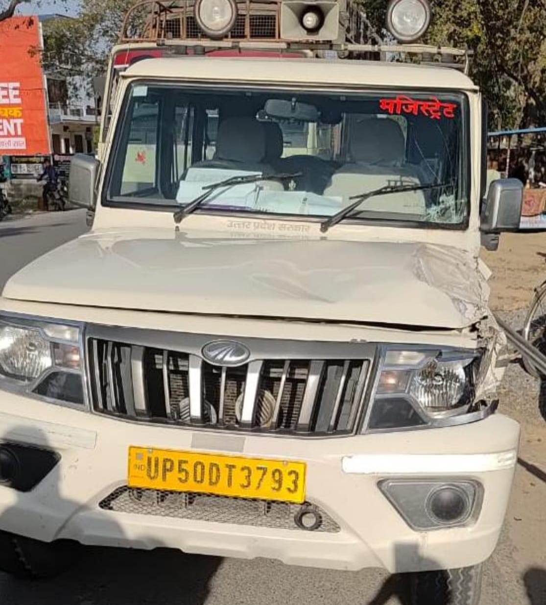 सगड़ी तहसील क्षेत्र में शुक्रवार शाम उस समय अफरा-तफरी मच गई, जब महाराजगंज के नायब तहसीलदार रणजीत बहादुर सिंह की सरकारी गाड़ी को एक तेज रफ्तार ट्रक ने जोरदार टक्कर मार दी। टक्कर इतनी भीषण थी कि सरकारी वाहन बुरी तरह क्षतिग्रस्त हो गया, हालांकि गनीमत रही कि नायब तहसीलदार बाल-बाल बच गए।
