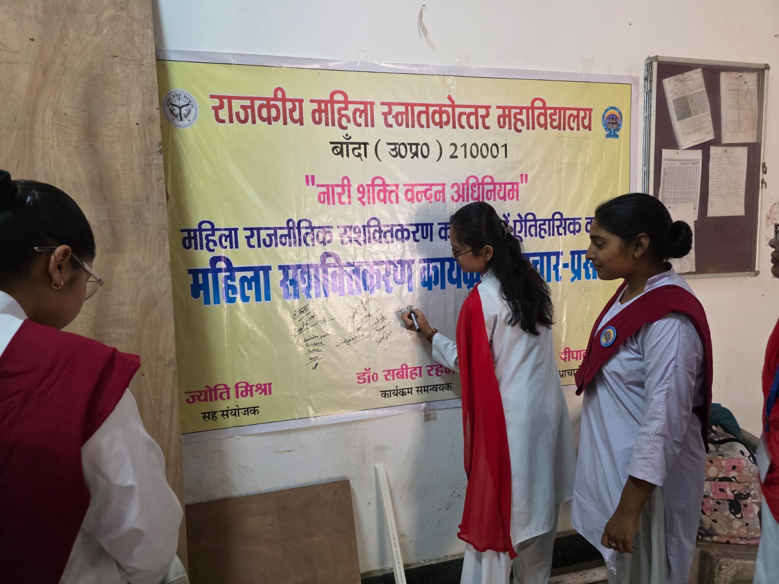 जिसका शुभारंभ प्रभारी प्राचार्य डाक्टर जे. पी. सिंह के द्वारा किया गया । कार्यक्रम का संयोजन संयोजिका डॉ सबीहा रहमानी एवं सहसंयोजक डाक्टर ज्योति मिश्रा के द्वारा किया गया । चूंकि यह अधिनियम महत्वपूर्ण बदलाव लाएगा और यह एक शानदार ऐतिहासिक कदम है, इसी उद्देश्य से इस अधिनियम के प्रति जन जागरूकता लाने तथा इसके प्रचार प्रसार हेतु महाविद्यालय में हस्ताक्षर अभियान कार्यक्रम का भी आयोजन किया गया ।