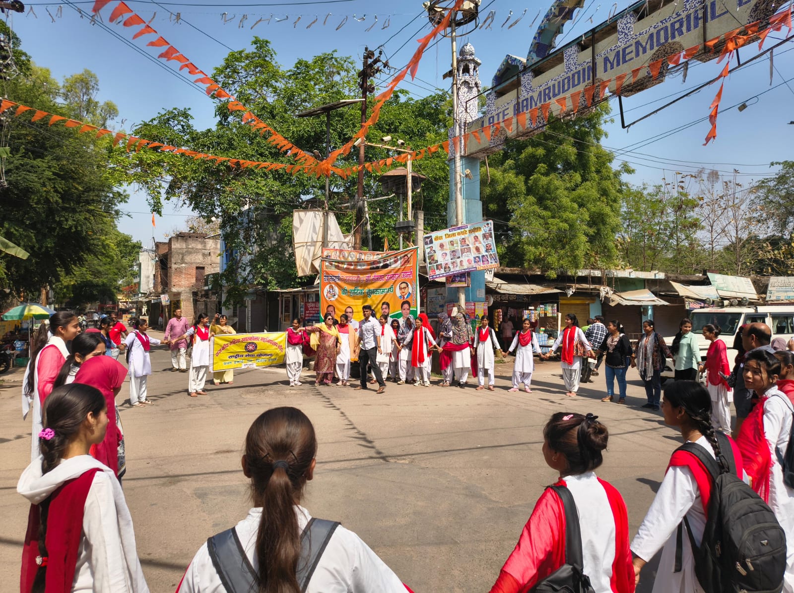 दिनांक- 16/04/2026 अप्रैल 2026 को शासन के निर्देशानुसार नारी शक्ति वंदन अधिनियम – प्रचार-प्रसार कार्यक्रम दिनांक 10/04/2026 से दिनांक 20/04/2026 के क्रम में राजकीय महिला स्नातकोत्तर महाविद्यालय बाँदा में प्राचार्य प्रो. दीपाली गुप्ता के निर्देशन में “ नारी शक्ति वंदन अधिनियम” से सम्बंधित मानव श्रंखला का आयोजन महाविद्यालय से नगरपालिका और ज़िला परिषद चौराहे में किया गया ।