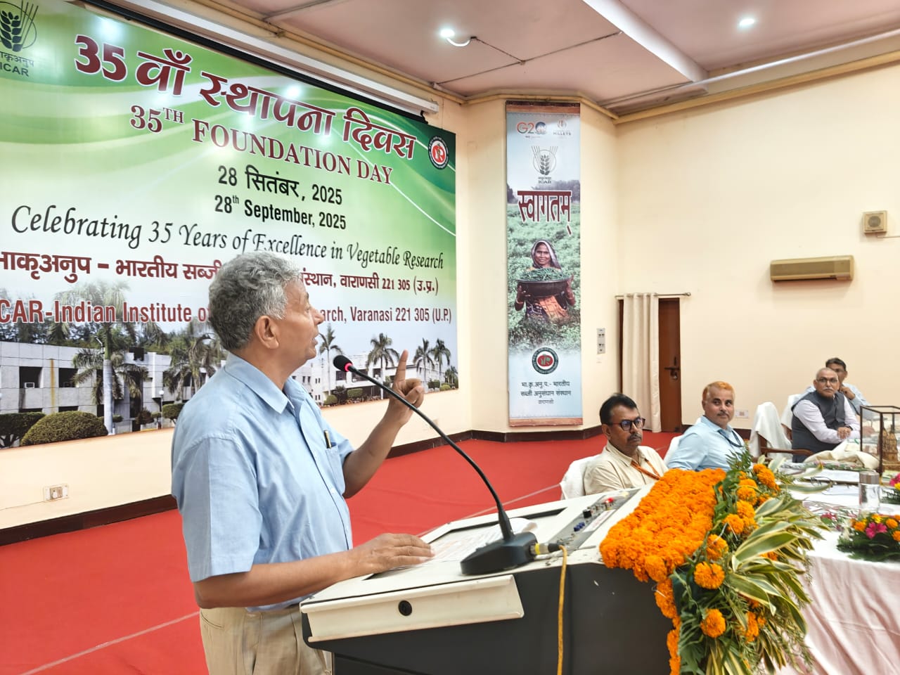 राजातालाब आराजी लाइन विकासखंड क्षेत्र के शाहंशाहपुर स्थित भारतीय सब्जी अनुसंधान संस्थान ने बड़े हर्षोल्लास के साथ अपना 35 वाँ स्थापना दिवस मनाया। दीप प्रज्वलन और संस्थान के ध्येय वाक्य “विज्ञान-आधारित सब्जी विकास: स्वस्थ एवं समृद्ध भारत की ओर” के उद्घोष से शुरू हुआ यह समारोह देश की पोषण और आर्थिक सुरक्षा में संस्थान के ऐतिहासिक योगदान को दर्शाता है।संस्थान ने अब तक 33 सब्जी फसलों में 133 उन्नत किस्में (25 संकर सहित) विकसित की हैं। इनमें काशी मनु (कलमी साग), काशी अन्नपूर्णा (पंखिया सेम), काशी उदय, काशी नंदिनी (सब्जी मटर), काशी कंचन (लोबिया), काशी क्रांति (भिंडी), काशी अमन (टमाटर), काशी अनमोल (मिर्च), काशी गंगा (लौकी) और काशी तरु (बैंगन) जैसी किस्में किसानों में व्यापक रूप से लोकप्रिय हुई हैं।