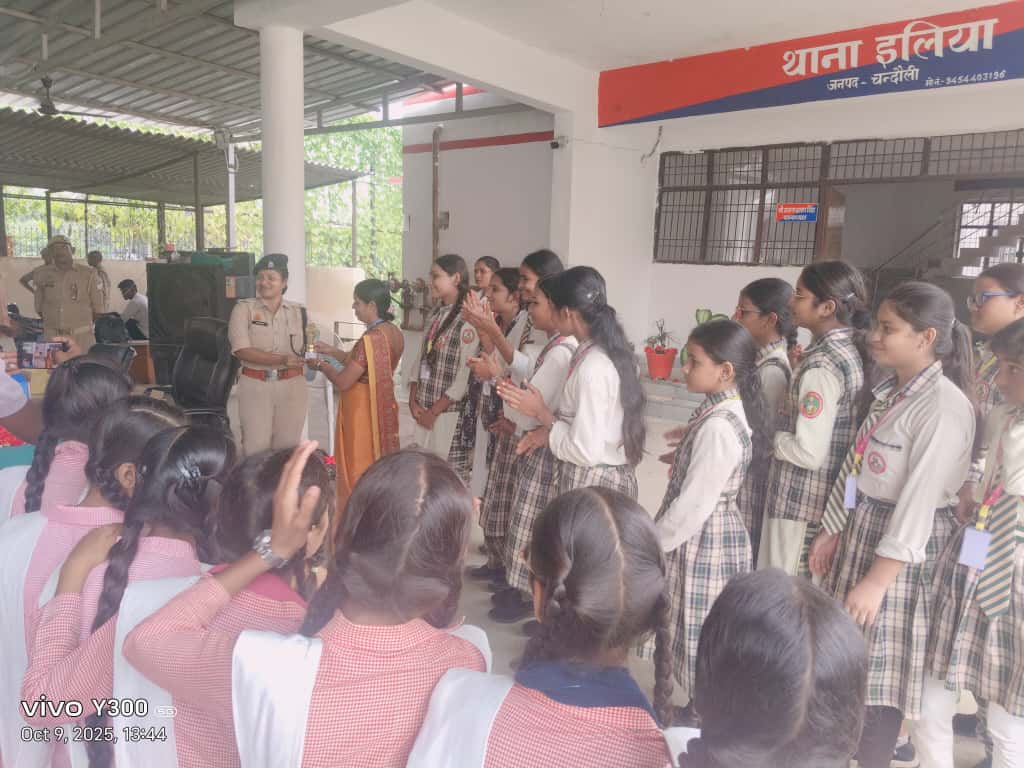 चंदौली- उ०प्र० शासन की मंशा के अनुरुप मिशन शक्ति अभियान (फेज-5.0) के अंतर्गत पुलिस अधीक्षक चन्दौली आदित्य लांग्हे के निर्देशन में दिनाँक 09.10.2025 को में आकांक्षा गौतम पुलिस उपाधीक्षक की उपस्थिति में थाना इलिया की एंटीरोमियों टीम द्वारा थाना इलिया में जन चौपाल लगाकर बालिकाओं को जागरुक किया गया। साथ ही महिला संबंधित समस्याओं के निस्तारण कराने के संबंध में जागरुक किया गया। जनपदीय पुलिस द्वारा महिलाओं एवं बालिकाओं के साथ जुड़ कर उन्हें सशक्त एवं सुरक्षित वातावरण देने का प्रयास किया जा रहा है।