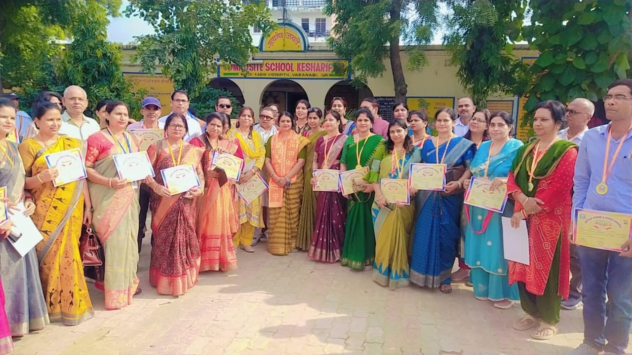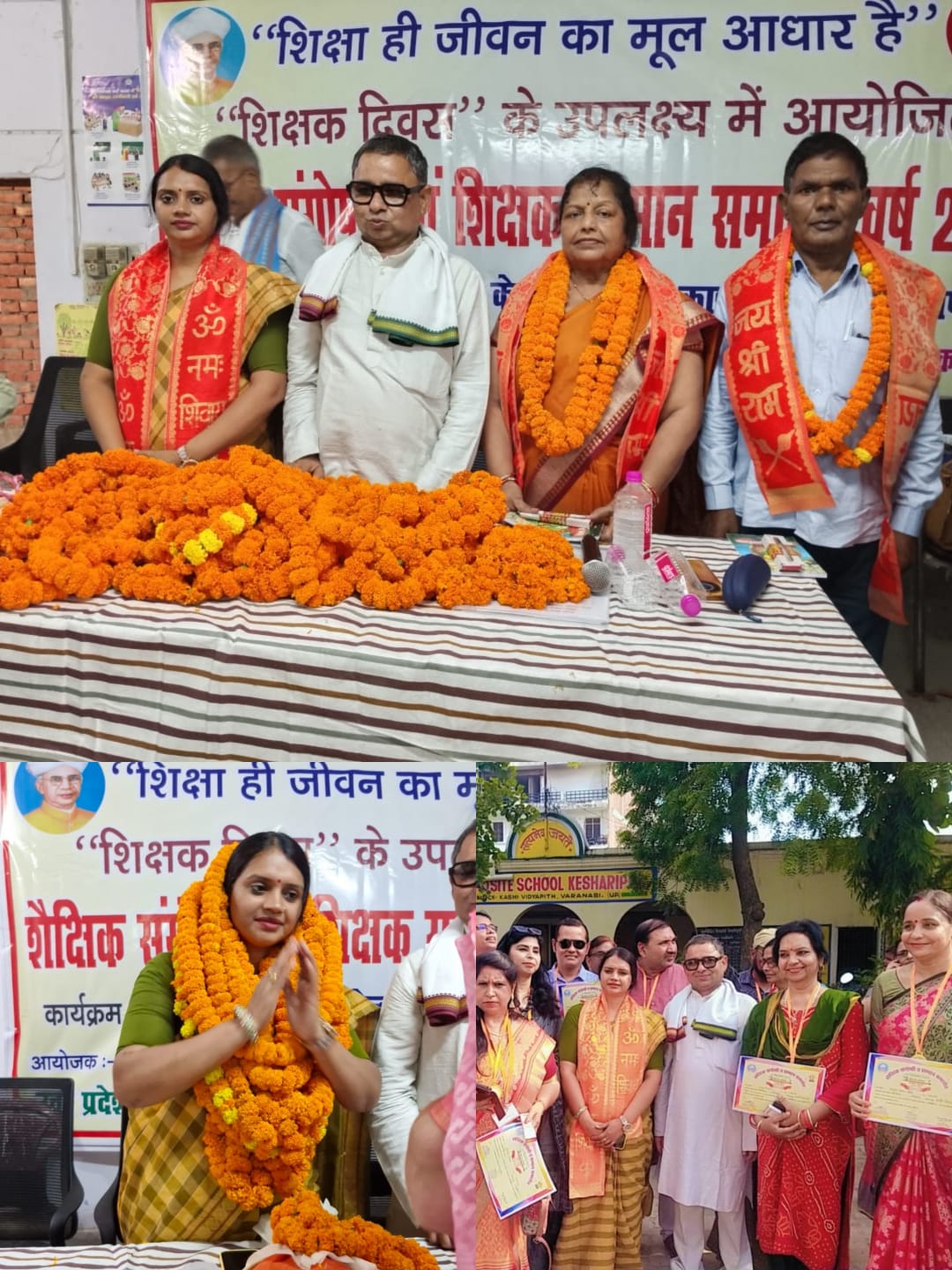 वाराणसी विगत वर्षों की भाँति उत्तर प्रदेशीय प्राथमिक शिक्षक संघ के अध्यक्ष सनत कुमार सिंह नेतृत्व में बी. आर. सी. केशरीपुर में शिक्षक दिवस के उपलक्ष में आयोजित शैक्षिक संगोष्ठी एवं सम्मान समारोह में मुख्य अतिथि जिला पंचायत अध्यक्ष पूनम मौर्या द्वारा कुल 146 कार्यरत शिक्षकों को सम्मान पत्र, मेडल, कलम एवं 05 सेवानिवृत शिक्षकों को अंग वस्त्रम, गीता, मेडल, कलम, पुष्पहार इत्यादि प्रदान कर सम्मानित किया गया। अपने सम्बोधन में पूनम मौर्या ने कहा कि ‘शिक्षक का राष्ट्र निर्माण में महत्वपूर्ण योगदान है। शिक्षक बच्चों के भविष्य के रक्षक है। सनत कुमार सिंह ने कहा कि शिक्षा ही जीवन का मूल आधार है जो के संगोष्ठी का विषय भी है।