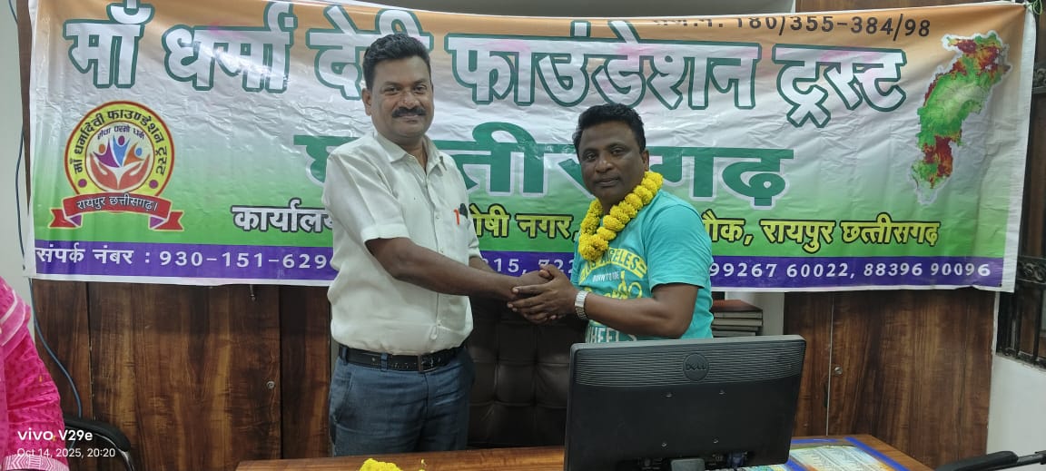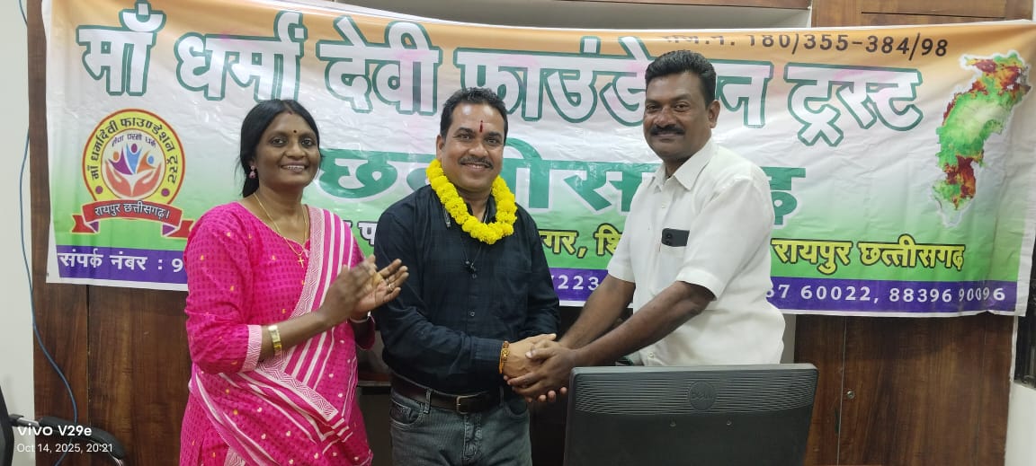 छत्तीसगढ़ , मां धर्मा देवी फाउंडेशन ट्रस्ट के प्रदेश सहसचिव यशवन्त नायक, प्रदेश महामंत्री जे. संतोष को पुष्पमाला भेंट कर किया गया सम्मानित , एवं प्रदेश कार्यकारिणी सदस्य लोकेश सिन्हा को पदोन्नति कर प्रदेश सहकोषाध्यक्ष के पद पर नियुक्त किया गया।