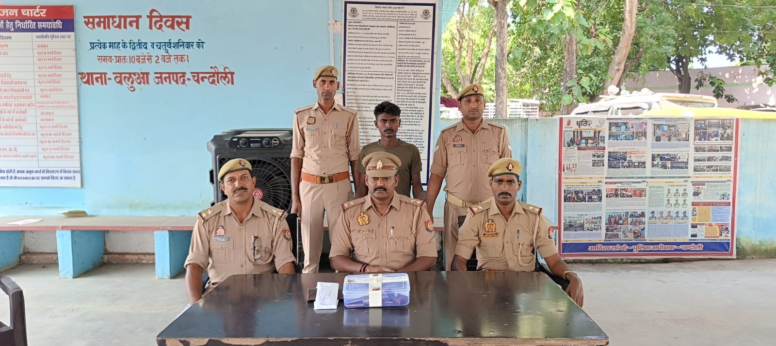 के पर्यवेक्षण में थानाध्यक्ष अतुल कुमार थाना बलुआ के नेतृत्व में थाना बलुआ पुलिस टीम द्वारा रईया मोड बहद ग्राम रईया में चेकिंग के दौरान 01 व्यक्ति जिसकी पहचान कृष्णकांत उर्फ पुच्चू पुत्र महेन्द्र निवासी ग्राम चक गुरेरा थाना बलुआ जनपद चन्दौली उम्र 21 वर्ष जिसके कब्जें से 01 अवैध असलहा 315 बोर, 02 जिन्दा कारतूस 315 बोर व 01 एक स्कार्पियो वाहन संख्या UP62R0777 बरामद कर अभियुक्त को किया गया गिरफ्तार। गिरफ्तारी व बरामदगी के आधार पर थाना स्थानीय पर मु0अ0सं0- 266/2025 धारा 3/25 आर्म्स एक्ट में अभियोग पंजीकृत कर आवश्यक विधिक कार्यवाही की जा रही है।