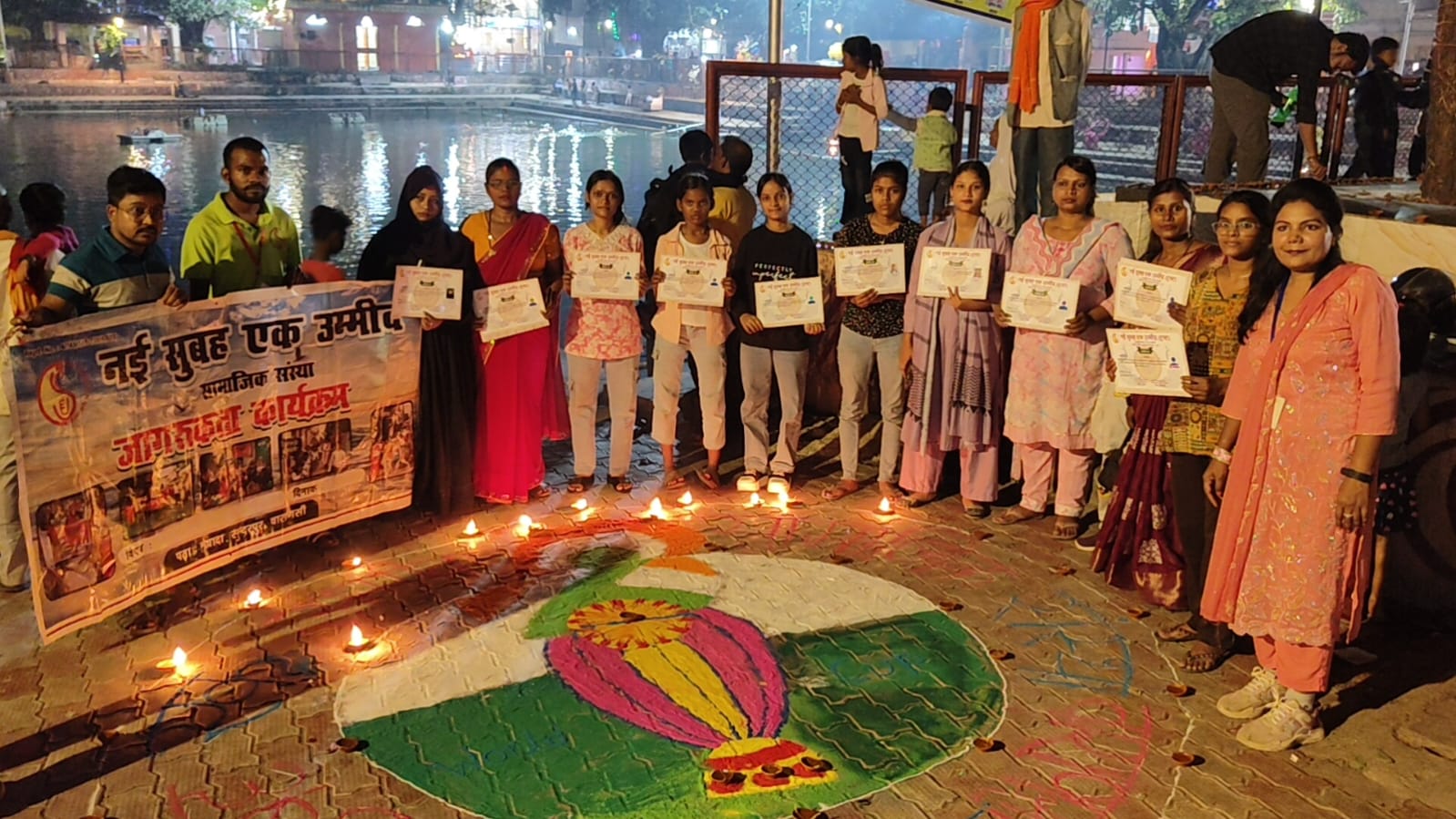 देव दीपावली के शुभ अवसर पर नई सुबह एक उम्मीद सामाजिक संस्था के द्वारा भेलूपुर वार्ड में स्थित संकुल धारा पोखरे पर एक अनोखे कार्यक्रम का आयोजन किया गया। इस कार्यक्रम में लड़कियों और महिलाओं ने ” महिला क्रिकेट वर्ल्ड कप 2025 जीतने की थीम पर रंगोली बनाई और बेटी बचाओ बेटी पढ़ाओ मुहिम के तहत लोगों को जागरूक किया। इस कार्यक्रम का संचालन संस्था अध्यक्ष ममता ने किया और बताया कि देव दीपावली का पर्व भगवान शिव के अर्धांगिनी माँ पार्वती के साथ विवाह के उपलक्ष्य में मनाया जाता है। इस दिन देवता स्वर्ग से पृथ्वी पर आते हैं और दीप जलाकर उनका स्वागत किया जाता है। देव दीपावली का पर्व हमें जीवन में प्रकाश और ज्ञान की महत्वता को समझाता है और हमें अंधकार से प्रकाश की ओर ले जाने का संदेश देता है।