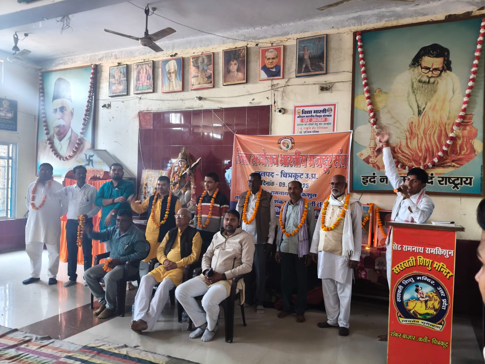 जिसमें मुख्य वक्ता के रूप में श्रीकांत अवस्थी ने बताया कि भारतीय मजदूर संघ श्रमिकों के हित में कर्मचारियों के हित में नैतिक रूप से बहुत अच्छा कार्य करता है समाज उत्थान राष्ट्र निर्माण में सर्वोपरि है मुख्य वक्ता ने बताया कि भारतीय मजदूर संघ के विचारों से कार्यकर्ता है राष्ट्रीय स्वयंसेवक संघ के जिला प्रचारक लोकेंद्र ने भारतीय मजदूर संघ एवं संघ के विषय में विस्तृत जानकारी दी और संघ के 100 वर्ष पूर्ण होने पर आगामी चल रहे कार्यक्रमों के विषय में भी विस्तृत रूप से जानकारी दी उसी कड़ी में चित्रकूट धाम पर क्षेत्र मंडल के विभाग प्रमुख श्रीमान धर्म नरेश जी भाई साहब ने भारतीय मजदूर संघ की कार्य शैली पर प्रकाश डाला और बताया कि किस क्षेत्र पर कार्य किया जा सकता है और किस-किस क्षेत्र में करना बाकी है