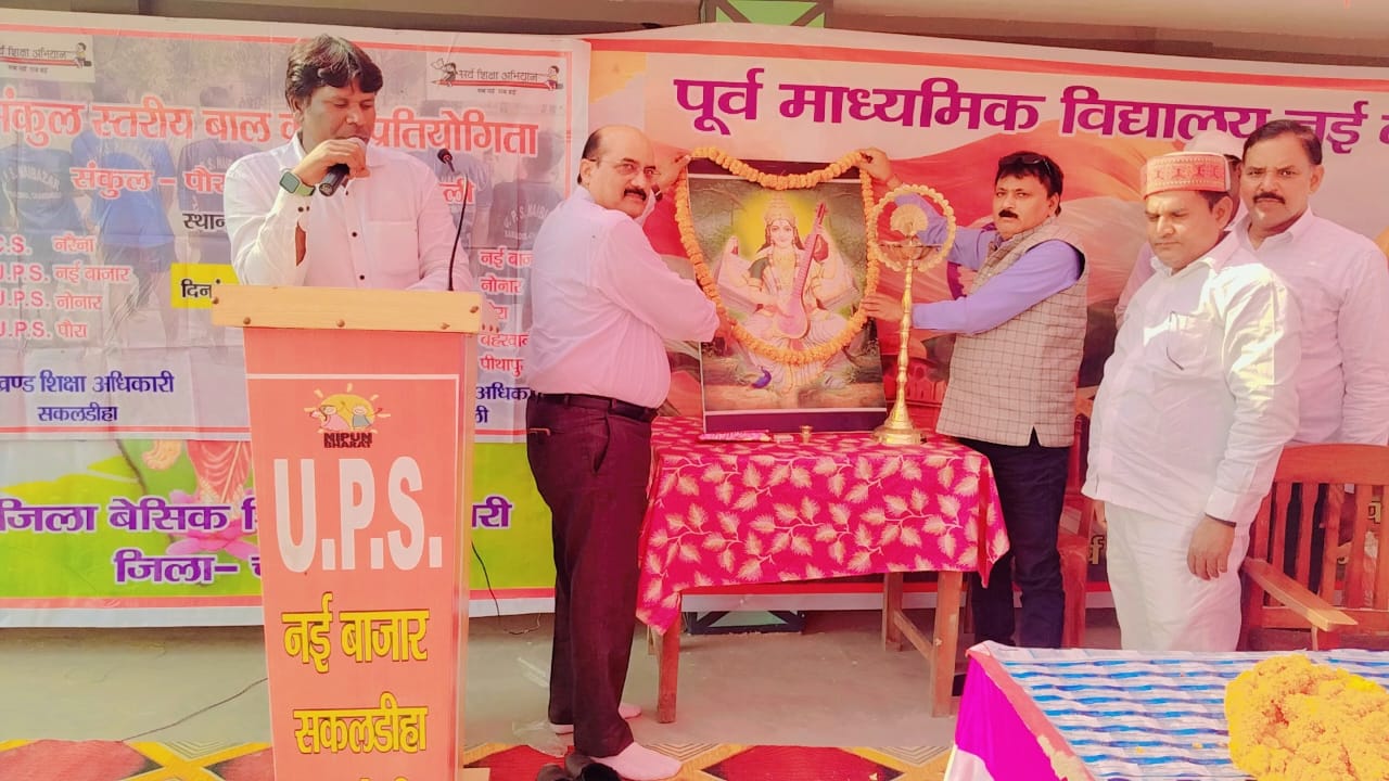 पूर्व माध्यमिक विद्यालय नई बाजार के प्रांगण में संकुल स्तरीय बाल क्रीड़ा प्रतियोगिता का आयोजन किया गया इसमें मुख्य अतिथि के रूप में खंड शिक्षा अधिकारी अवधेश कुमार राय ,विशिष्ट अतिथि के रूप में ग्राम प्रधान जितेंद्र यादव , व प्रभारी प्रधानाध्यापक अरुण रत्नाकर रहे कार्यक्रम की शुरुआत मां सरस्वती की प्रतिमा पर माल्यार्पण व दीप प्रज्वलित कर किया गया ,विद्यालय की बच्चियों द्वारा सरस्वती बंदना और सांस्कृतिक कार्यक्रम प्रस्तुत किए गए ,ऊंची कूद में उच्च प्राथमिक का स्तर पर नई बाजार का छात्र