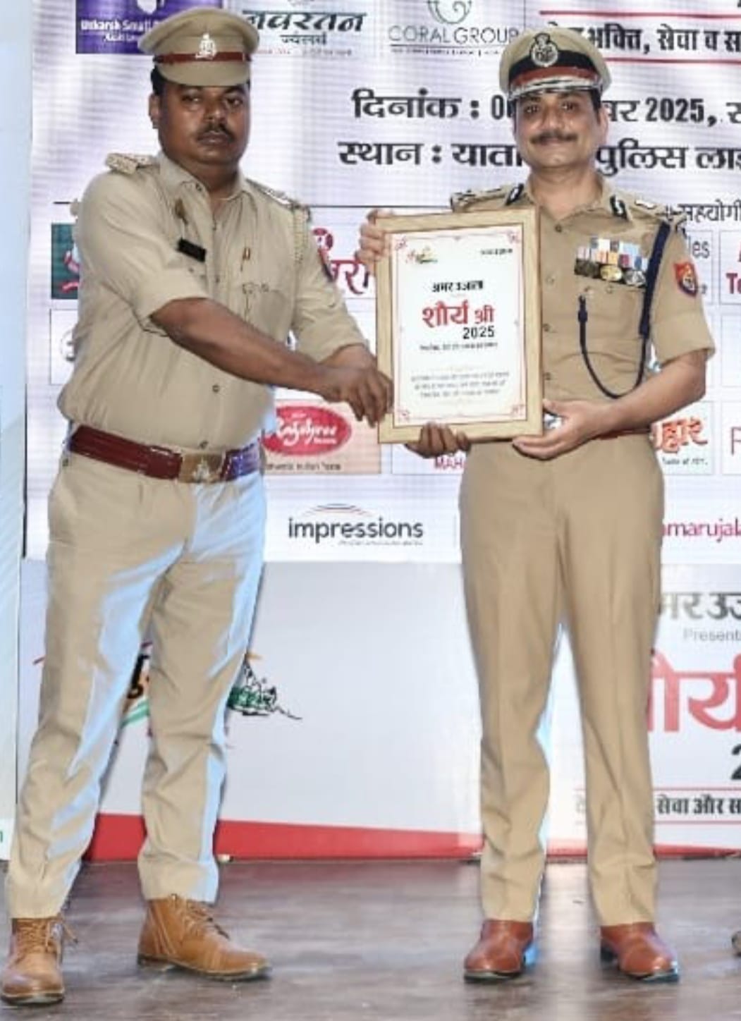 वाराणसी! रामनगर थाने में तैनात कस्बा प्रभारी जयप्रकाश सिंह को उनकी तेज तर्रार कार्यशाली जनता के प्रति विश्वास और अपराध पर अंकुश लगाने मैं महत्वपूर्ण भूमिका निभाने के लिए वाराणसी के पुलिस कमिश्नर मोहित अग्रवाल द्वारा एक समारोह में प्रशस्ति पत्र देकर शौर्य श्री सम्मान 2025 से नवाजा गया उन्हें यह सम्मान पुलिस सेवा में उनके उत्कृष्ट योगदान और साहसिक कार्यों के लिए दिया गया आपको बताते चलें कि रामनगर थाने में इसके पूर्व भी वह भीटी चौकी इंचार्ज रह चुके हैं वह अपनी सटीक कार्यवाही और जनता के साथ बेहतर संवाद स्थापित करने के लिए जाने जाते हैं और रामनगर कस्बा प्रभारी पद संभालने के बाद नगर में अपराध पर अंकुश लगा है जिसके कारण लोगों में उनके प्रति विश्वास और सम्मान में वृद्धि हुई है या सम्मान उनके निस्वार्थ सेवा भाव और कर्तव्य निष्ठा का प्रमाण है वही यह सम्मान मिलने के बाद नगर के स्वयंसेवी संगठन के लोगों ने उन्हें बधाई दी