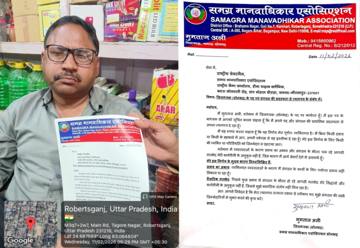 मुमताज अली ने ‘समग्र मानवाधिकार एसोसिएशन’ के जिला अध्यक्ष पद और सदस्यता से दिया इस्तीफा February 12, 2026 No Comments