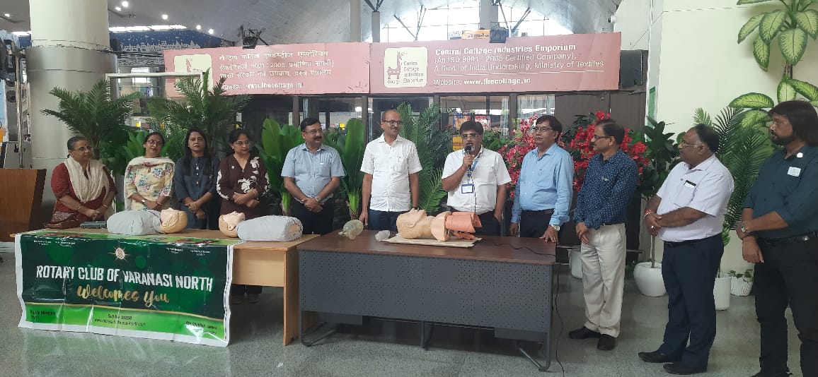 रोटरी क्लब ऑफ वाराणसी नॉर्थ की ओर से लाल बहादुर शास्त्री अंतरराष्ट्रीय हवाई अड्डे पर(CPR) कार्डियक अरेस्ट के समय जान बचाने की आपातकालीन जीवन रक्षक तकनीक का प्रशिक्षण दिया गया। October 8, 2025 No Comments