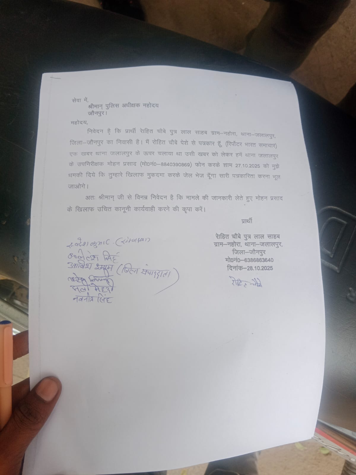 खबर से बौखलाएं वर्दी के नशे में चूर उप निरीक्षक मोहन प्रसाद दे रहे हैं। पत्रकार को धमकी October 31, 2025 No Comments