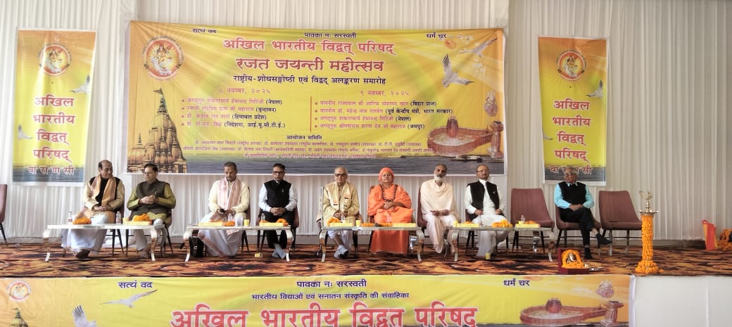 अखिल भारतीय विद्वत् परिषद् के रजत जयन्ती महोत्सव का उद्घाटन वैदिक मंत्रोच्चार के साथ सन्त एवं विद्वानों के करकमलों से दीप प्रज्वलित कर हुआ। मंचस्थ अतिथियों का माल्यार्पण एवं वाक्यपुष्प द्वारा स्वागत प्रो. रामपूजन पाण्डेय ने किया। November 8, 2025 No Comments