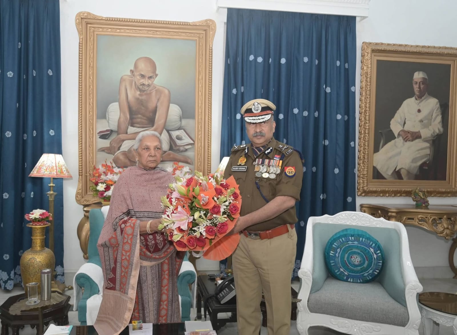 उत्तर प्रदेश की राज्यपाल आनंदीबेन पटेल को राजभवन में पुलिस झंडा दिवस के अवसर पर पुलिस महानिदेशक ई.ओ.डब्ल्यू. उत्तर प्रदेश नीरा रावत ने फ्लैग लगाया। November 24, 2025 No Comments