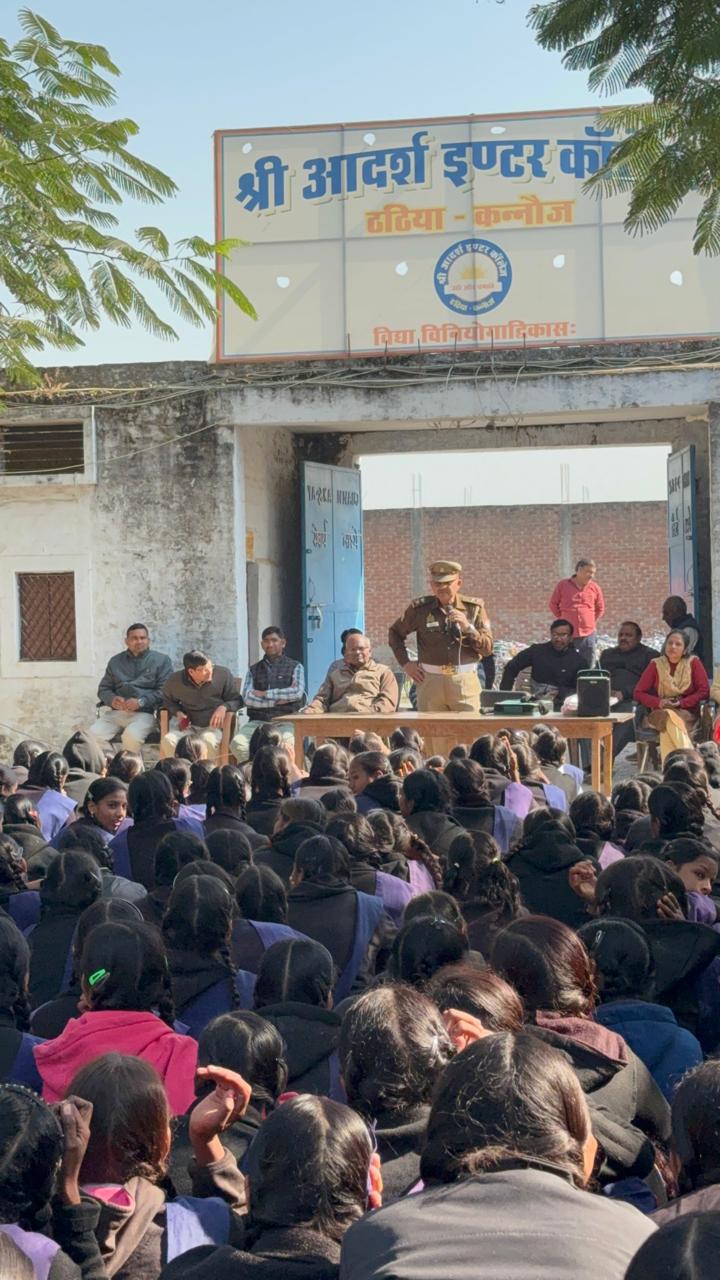 कन्नौज के ठठिया कस्बे के आदर्श इंटर कॉलेज में टीएसआई आफ़ाक़ खान द्वारा छात्र-छात्राओं को यातायात नियमों की महत्वपूर्ण जानकारी दी। December 10, 2025 No Comments