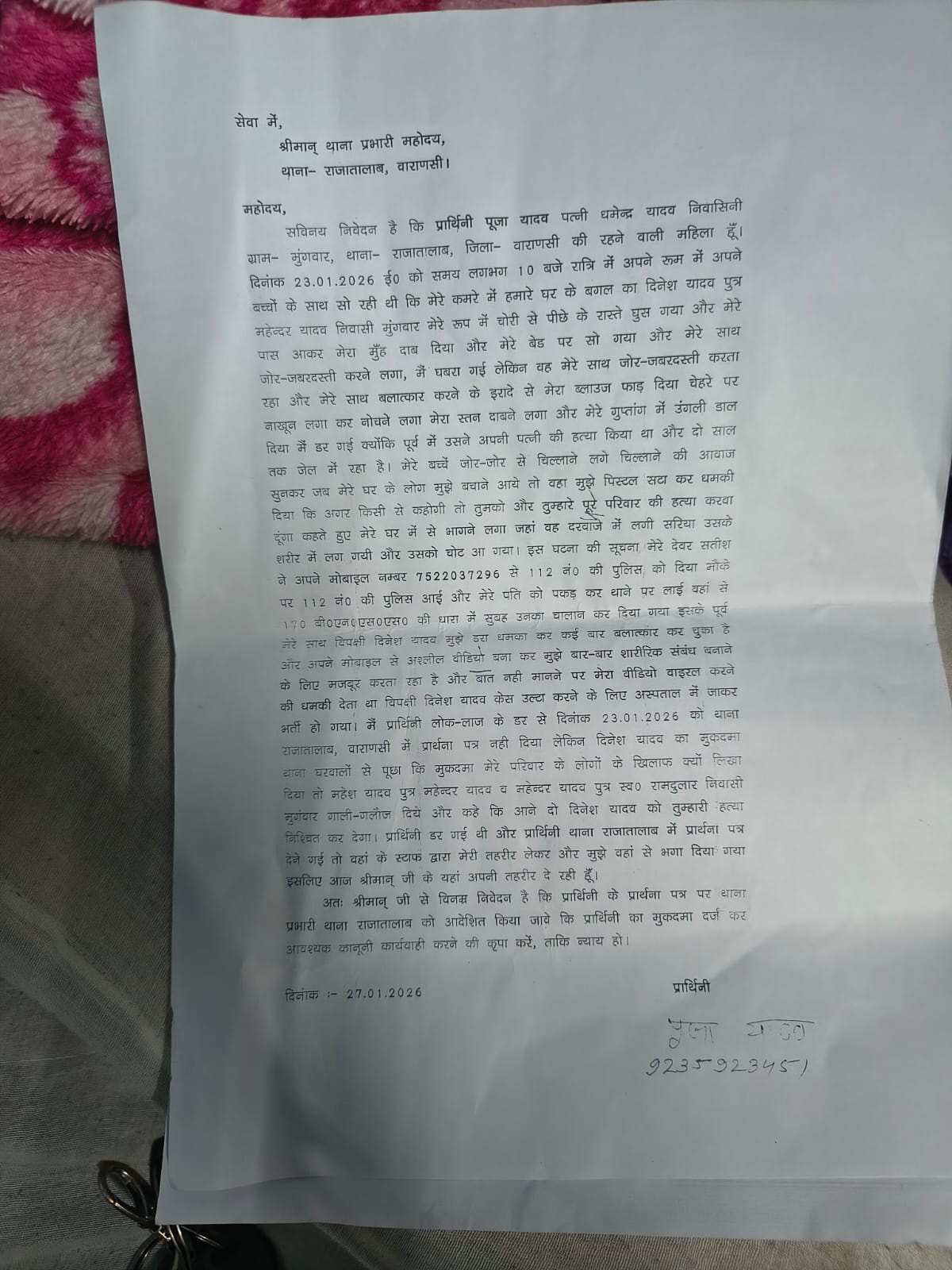 दिनेश यादव ने पूजा यादव से किया बलात्कार और पति बच्चे को जान से मारने की दी धमकी January 28, 2026 No Comments