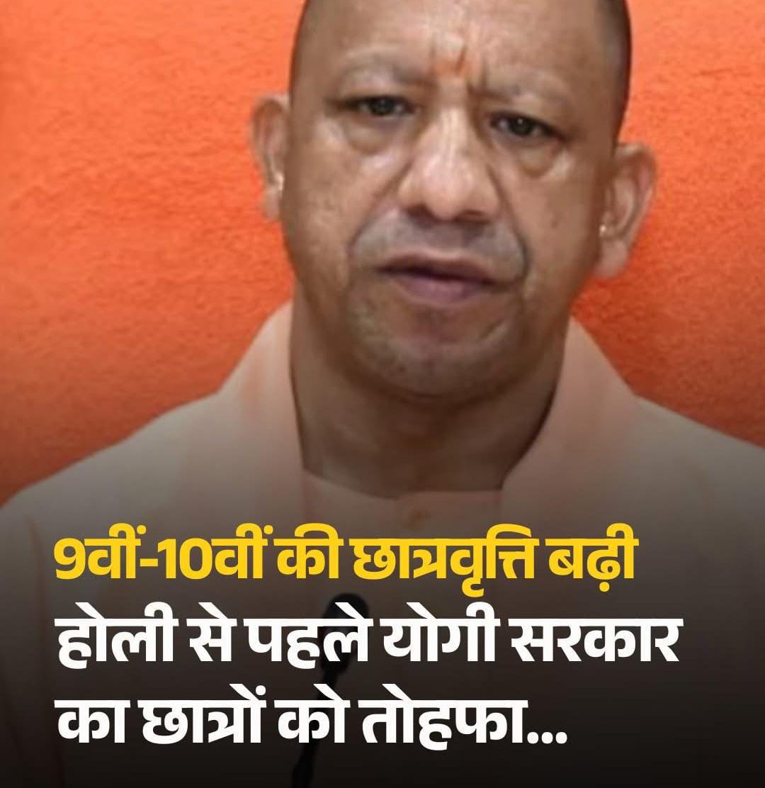 होली से पहले योगी आदित्यनाथ सरकार ने छात्रों को बड़ा तोहफा दिया है. उत्तर प्रदेश सरकार ने कक्षा 9 और 10 के छात्रों के लिए छात्रवृत्ति राशि बढ़ाने का फैसला किया है, जिससे प्रदेश के लाखों विद्यार्थियों को सीधा लाभ मिलेगा. February 26, 2026 No Comments